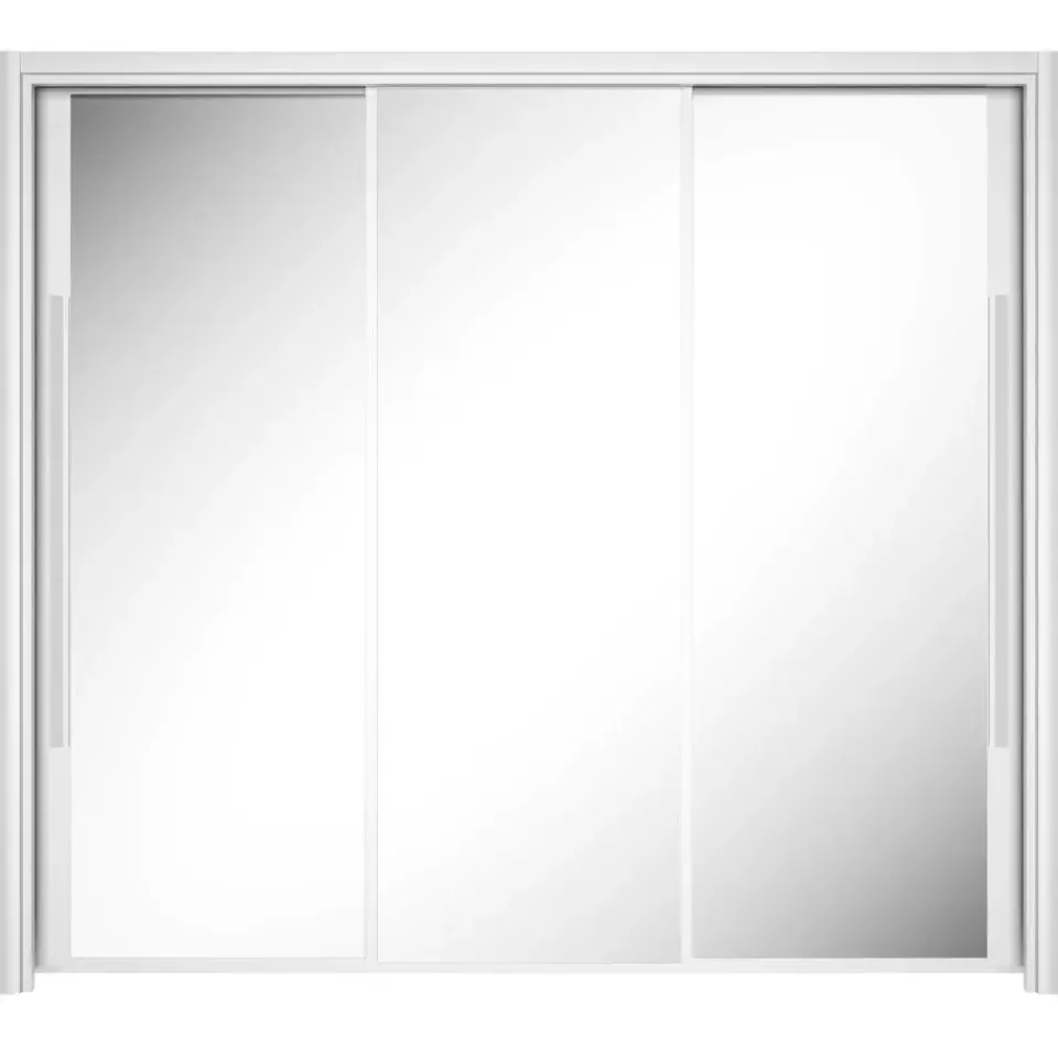 Deze ruime kledingkast is afgewerkt in neutraal wit en uitgerust met 3 schuifdeuren in spiegelglas. De kast wordt geleverd met 3 kledingroedes en 6 legplanken die je naar wens in de kast kunt plaatsen. Het is ook mogelijk om een ladeblok toe te voegen (apart verkrijgbaar). Beschikbaar in meerdere formaten.