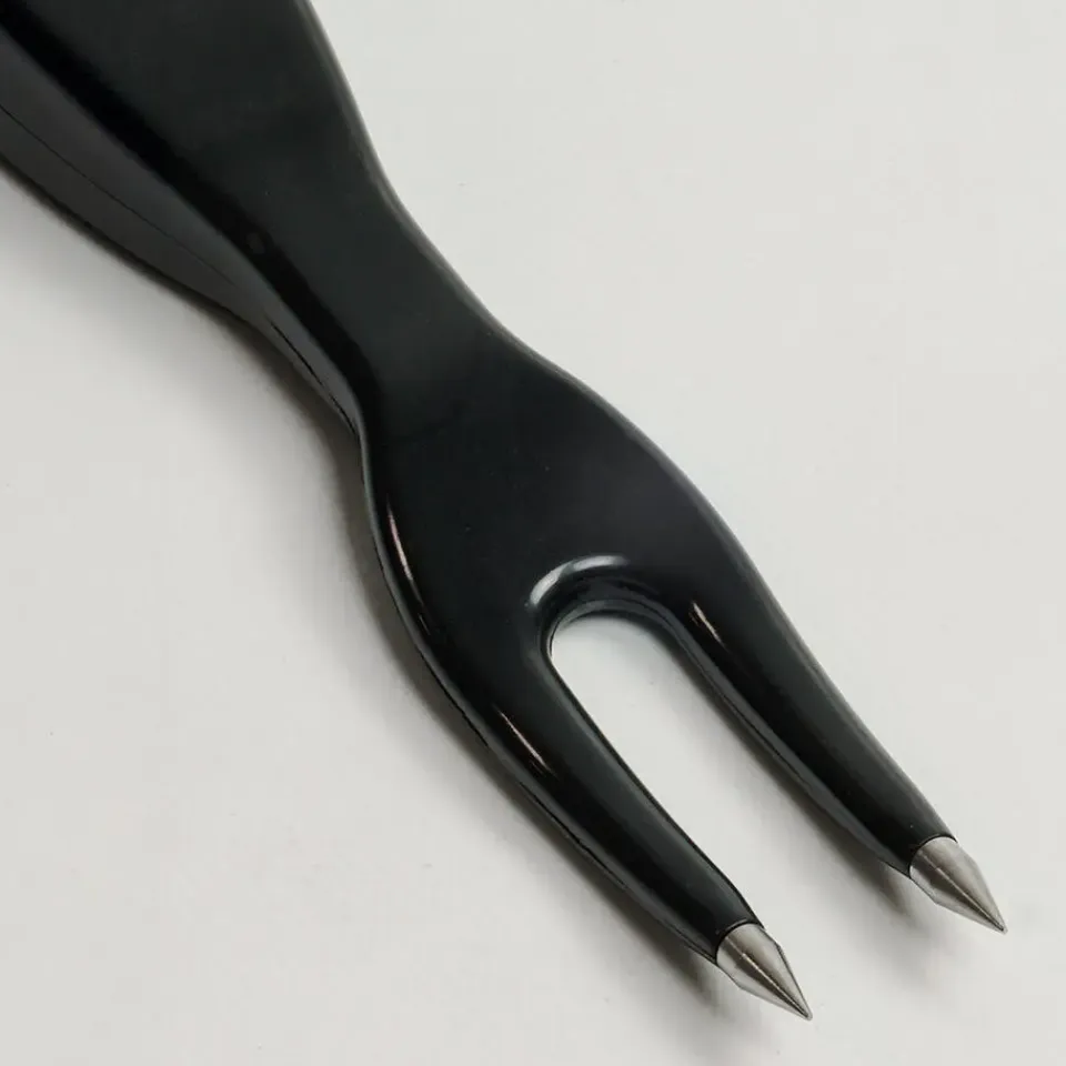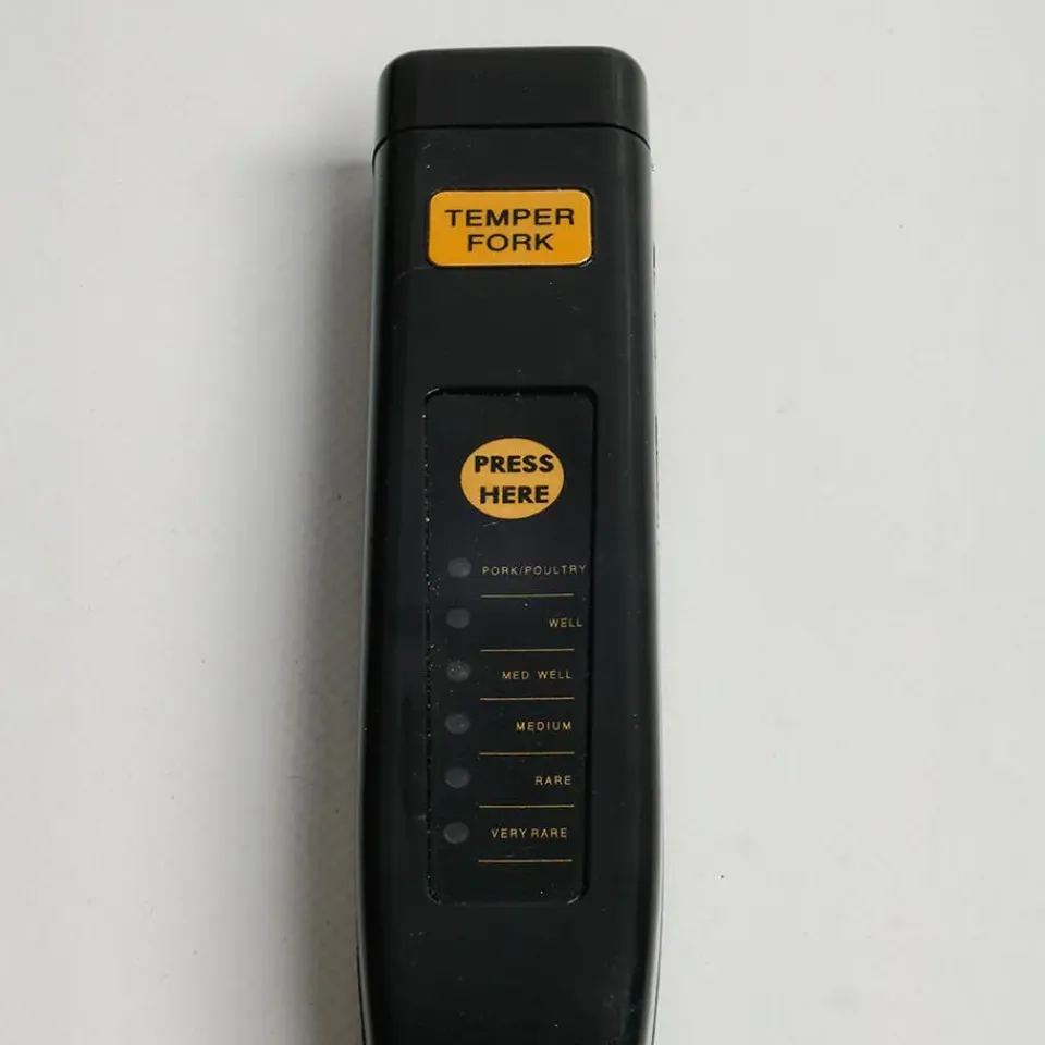 Met de kunststof thermometervork van Garden Grill haal je een handig hulpmiddel in huis voor perfect gegaard vlees. Deze thermometer werkt eenvoudig met 2 AA-batterijen (niet inbegrepen). Je steekt de tanden van de vork in het dikste deel van het vlees, zo dicht mogelijk bij het midden, en houdt ze 15-20 seconden vast. De temperatuur wordt vervolgens weergegeven in een van de handige vakjes: PORK/POULTRY, WELL DONE, MEDIUM WELL, MEDIUM, MEDIUM RARE, RARE of VERY RARE. Zo weet je altijd precies hoe gaar je vlees is, zonder giswerk. Ideaal voor jouw volgende barbecue of culinaire avond!