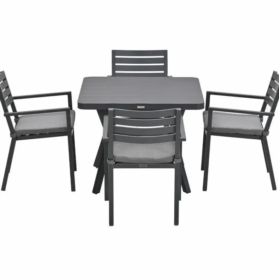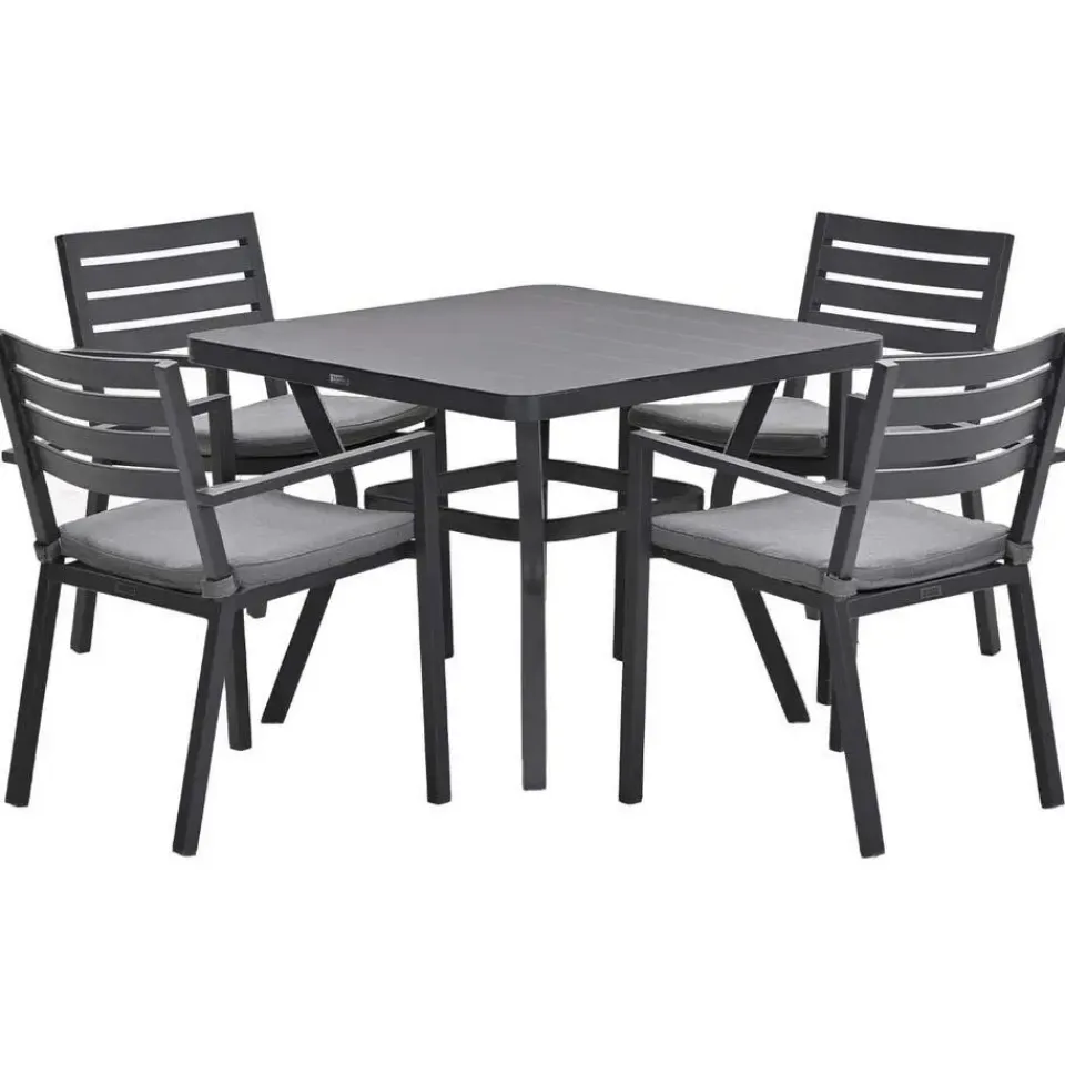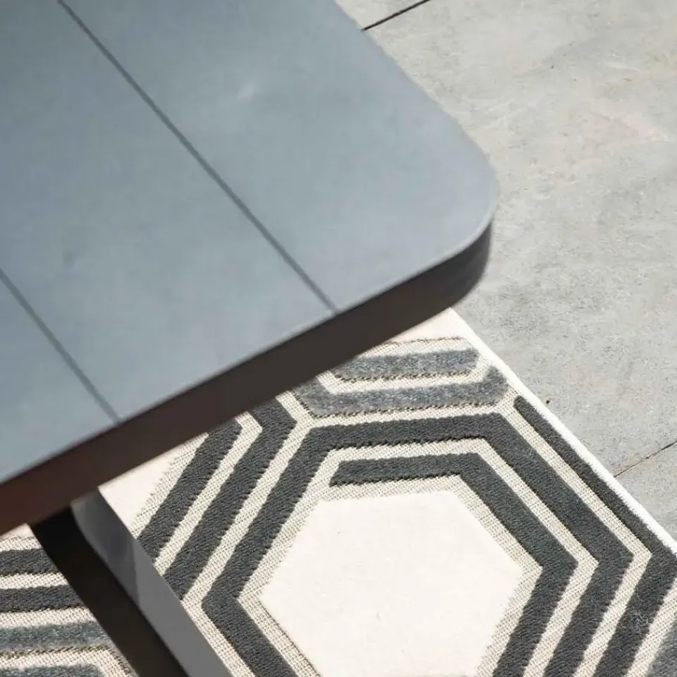De Mina tuintafel is vervaardigd uit een onderhoudsvrij en weerbestendig aluminium. Dit aluminium is voorzien van een stevige laag poedercoating. Aluminium is licht van gewicht en daardoor eenvoudig te verplaatsen.