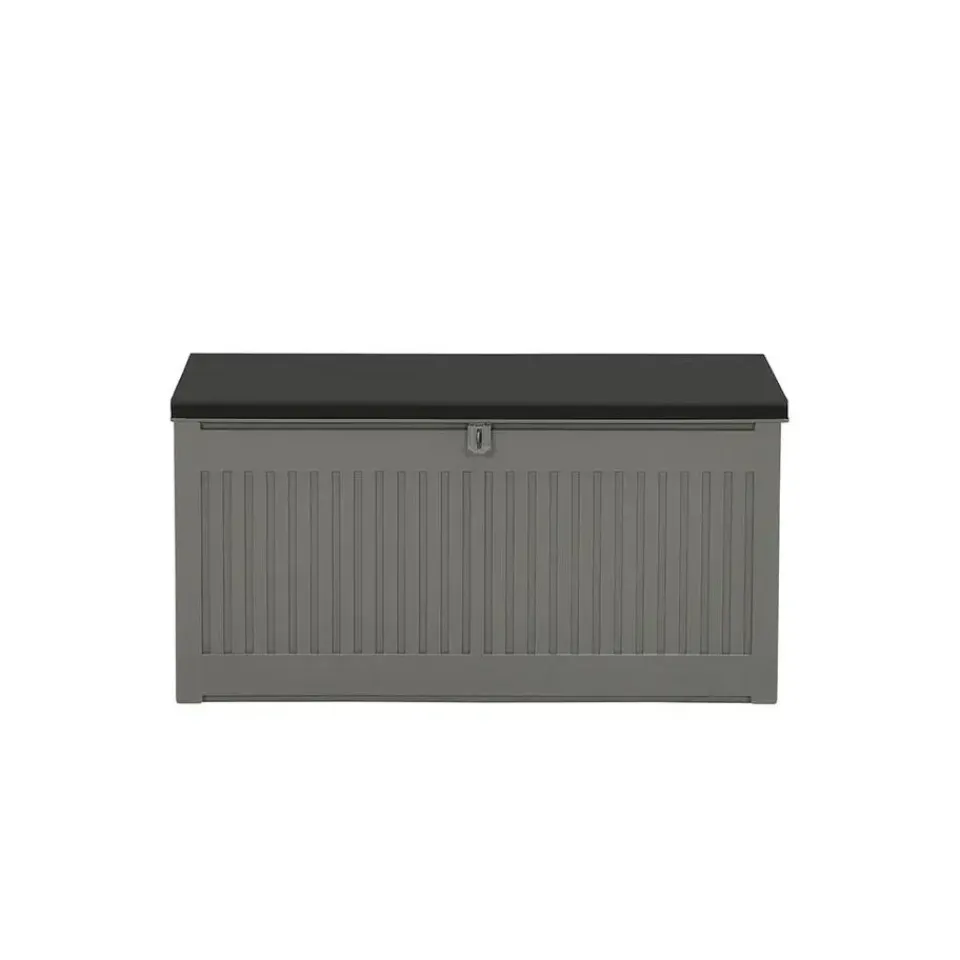De opbergbox heeft een afmeting van 109 cm lengte, 51.3 cm breedte en is 54.7 cm hoog. De inhoud van deze opbergbox bedraagt 270 liter. Afmeting is: L 109 x B 51,3 x H54,7 cm