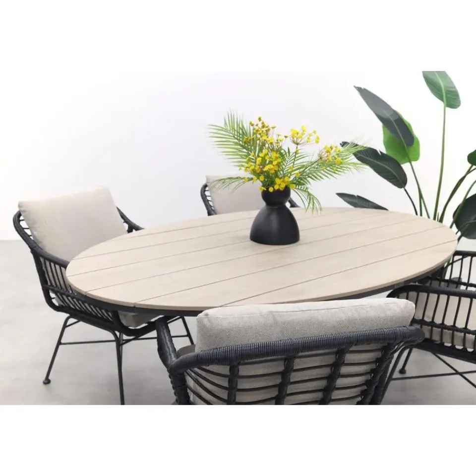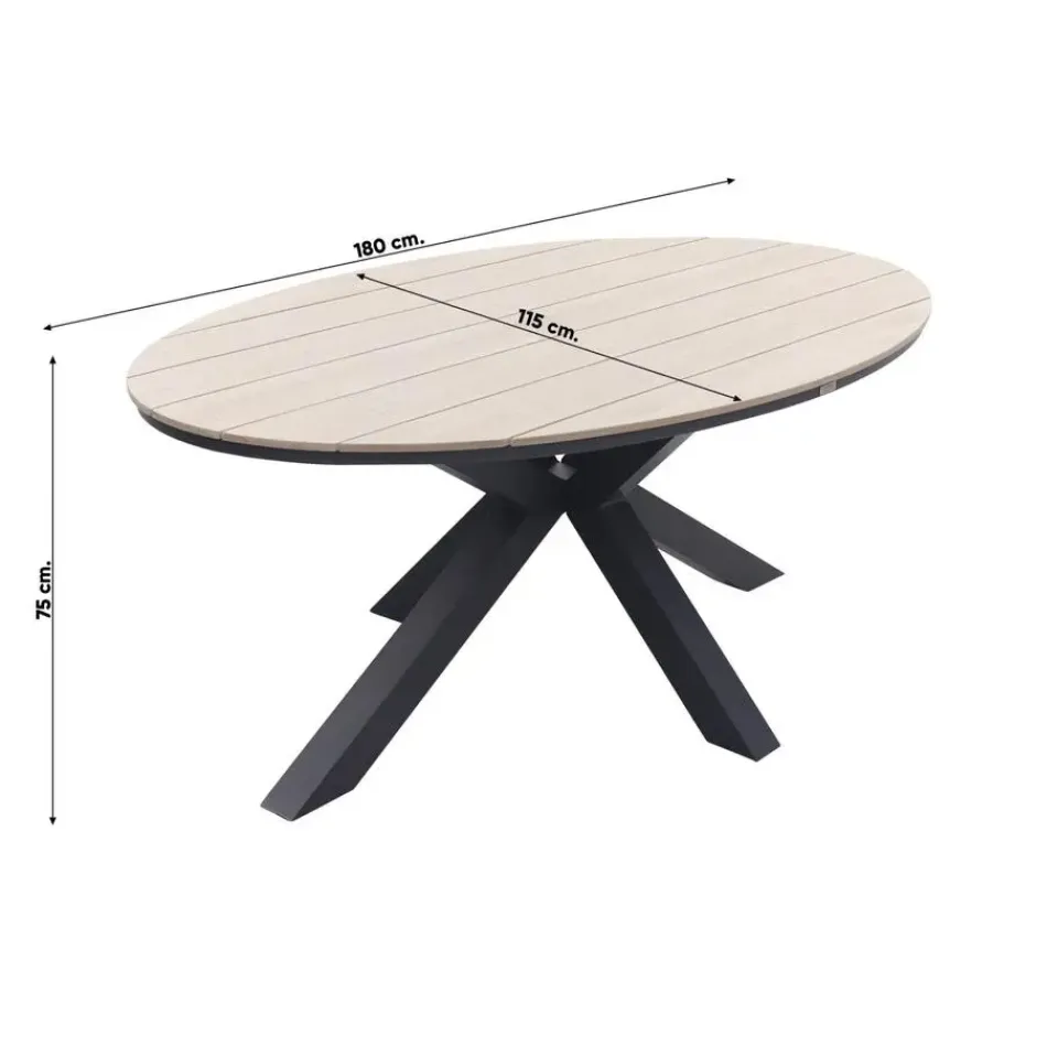 Eigenschappen Garden Impressions Edison ovale tuintafel polywood 180×115 cm.