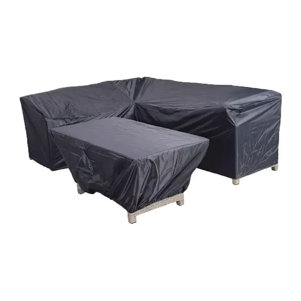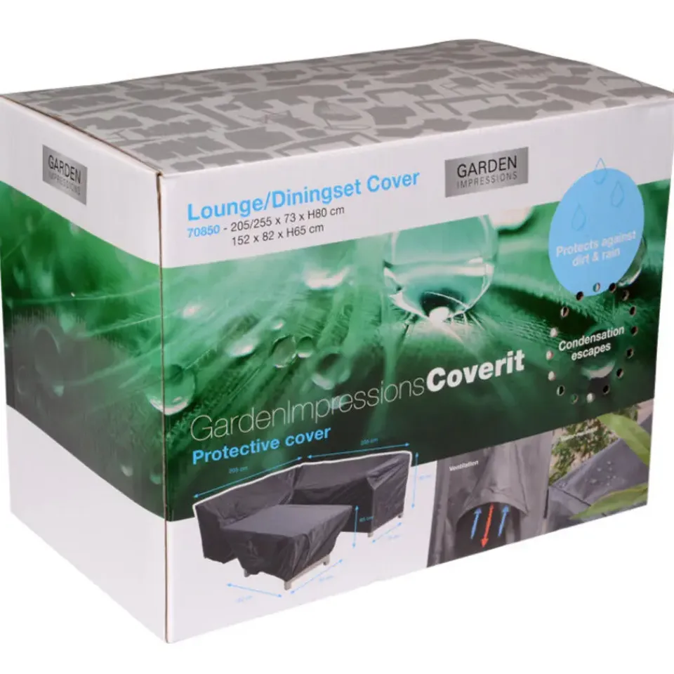 Ben je op zoek naar een beschermhoes voor jouw lounge dining set? Deze prettige lounge dining afdekhoes van kwaliteitsmerk Garden Impressions zorgt ervoor dat je langer plezier zult hebben van jouw lounge dining set. Om de levensduur van je loungeset te verlengen, raden wij aan om deze af te dekken in de wintermaanden. De beschermhoezen van Garden Impressions zijn gemaakt van PVC met een ademende coating. Deze coating zorgt ervoor dat hoes waterbestendig is. De hoes is niet volledig waterdicht, maar waterafstotend. Het is een flexibele ademende coating, waardoor de hoes in de wintermaanden ook nog flexibel blijft. Doordat de hoes niet volledig waterdicht is, is aan te raden om een afstand te creëren tussen de meubelen en de hoes. Het water kan er dan gemakkelijker afstromen en de meubelen kunnen niet verstikken. De beschermhoes is voorzien van ventilatie driehoeken zodat het tuinmeubel kan ademen. De lounge dining hoes kan gemakkelijk om de lounge dining set worden bevestigd. Op alle hoeken zit onderaan een elastieken band om de hoes strak te houden. We raden je aan om de kussen niet onder de hoes te laten liggen. Mocht de kussens al nat zijn geworden, is dat niet erg maar zorg er wel voor dat ze droog worden opgeborgen. De lounge dining set hoes met afmeting 205/255x73xH80 cm en 152x82xH65 cm.