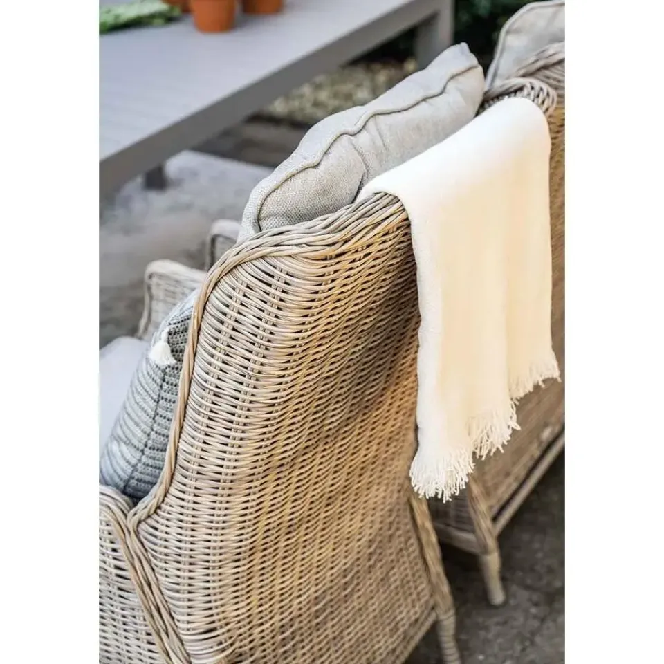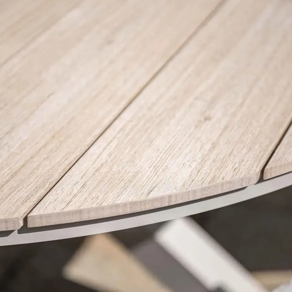 Het tafelblad is gemaakt van Vironwood latten, dit is een onderhoudsvriendelijke kunststof met een mooie houtuitstraling. Let wel op voor scherpe voorwerpen en vector vorming anders heb je zo krassen of smeltpuntjes in het Vironwood. Aluminium kan vies zijn geworden door opspattend regenwater of gemorst drinken bijvoorbeeld. Dit is eenvoudig schoon te maken met een sopje en een zachte doek. Het wicker is eenvoudig te reinigen met een zachte doek en de cleaner voor wicker. Als het wicker goed is gereinigd met de cleaner dan afspoelen met voldoende water. Wanneer het wicker weer droog is dan dient het weer behandelt te worden met een beschermer. De beschermer zorgt er weer voor dat het wicker soepel blijft. Het is aan te raden om dit minimaal twee keer per seizoen te doen en vooral de tastbare delen.