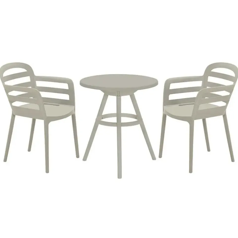 Wanneer de tuinstoel bij je thuis afgeleverd is kun je gelijk gaan genieten van de stoel. De tuinstoel wordt namelijk gemonteerd geleverd. De balkonset bestaat uit twee Mira tuinstoelen en een Faria tuintafel met een doorsnede van 60 cm.