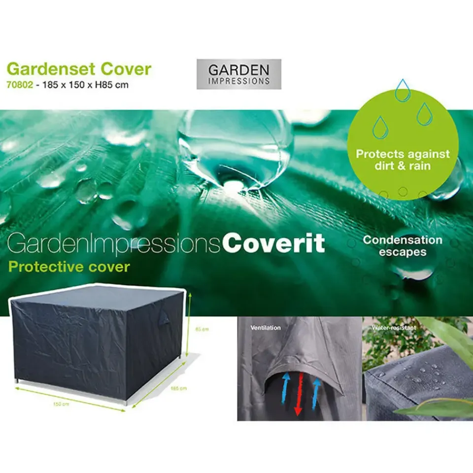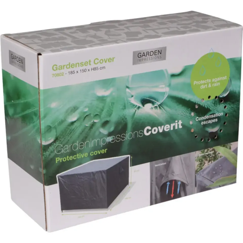 Ben je op zoek naar een beschermhoes voor jouw tuinset? Deze prettige tuinsethoes van kwaliteitsmerk Garden Impressions zorgt ervoor dat je langer plezier hebt van je tuinset. Om de levensduur van je tuinset te verlengen, raden wij aan om deze af te dekken in de wintermaanden. De tuinset beschermhoezen van Garden Impressions zijn gemaakt van PVC met een ademende coating. Deze coating zorgt ervoor dat hoes waterbestendig is. De beschermhoes is niet volledig waterdicht, maar waterafstotend. Het is een flexibele ademende coating, waardoor de hoes in de wintermaanden ook nog flexibel blijft. Doordat de tuinsethoes niet volledig waterdicht is, is aan te raden om een afstand te creëren tussen de meubelen en de beschermhoes. Het water kan er dan gemakkelijker afstromen en de meubelen kunnen niet verstikken. De beschermhoes is voorzien van ventilatie driehoeken zodat het tuinmeubel kan ademen. De tuinsethoes kan gemakkelijk om de tuinset worden bevestigd. Op alle hoeken zit onderaan een elastieken band om de hoes strak te houden. We raden je aan om de tuinkussens niet onder de hoes te laten liggen. Mochten de kussens al nat zijn geworden, is dat niet erg, maar zorg er wel voor dat ze droog worden opgeborgen. De tuinsethoes met afmeting 185x150xH85 cm.