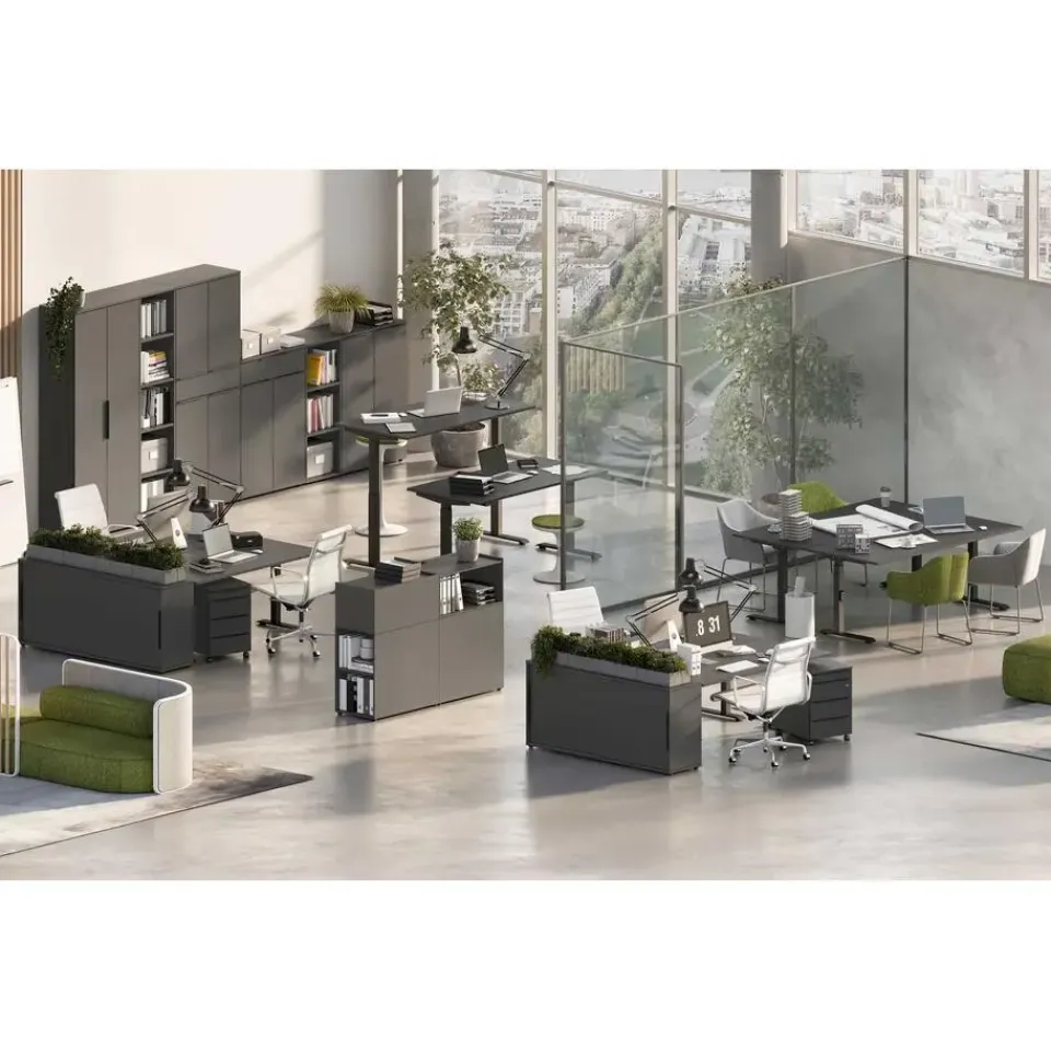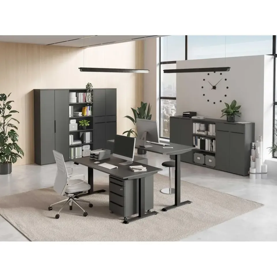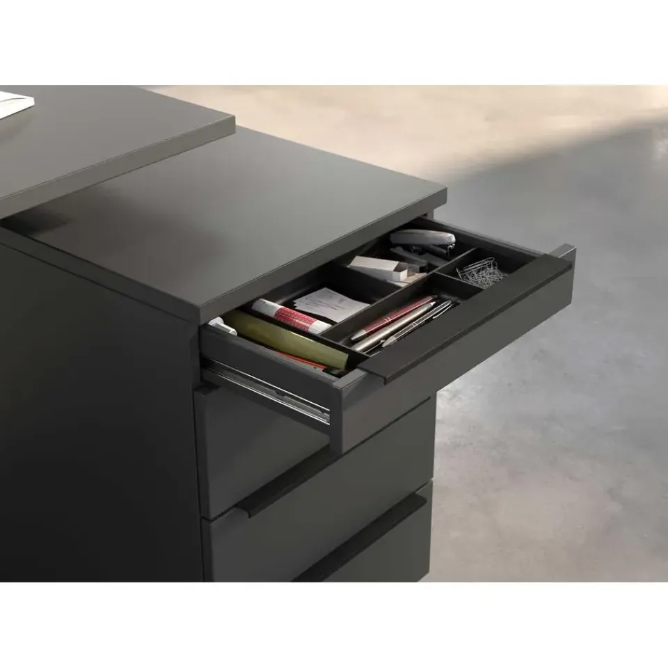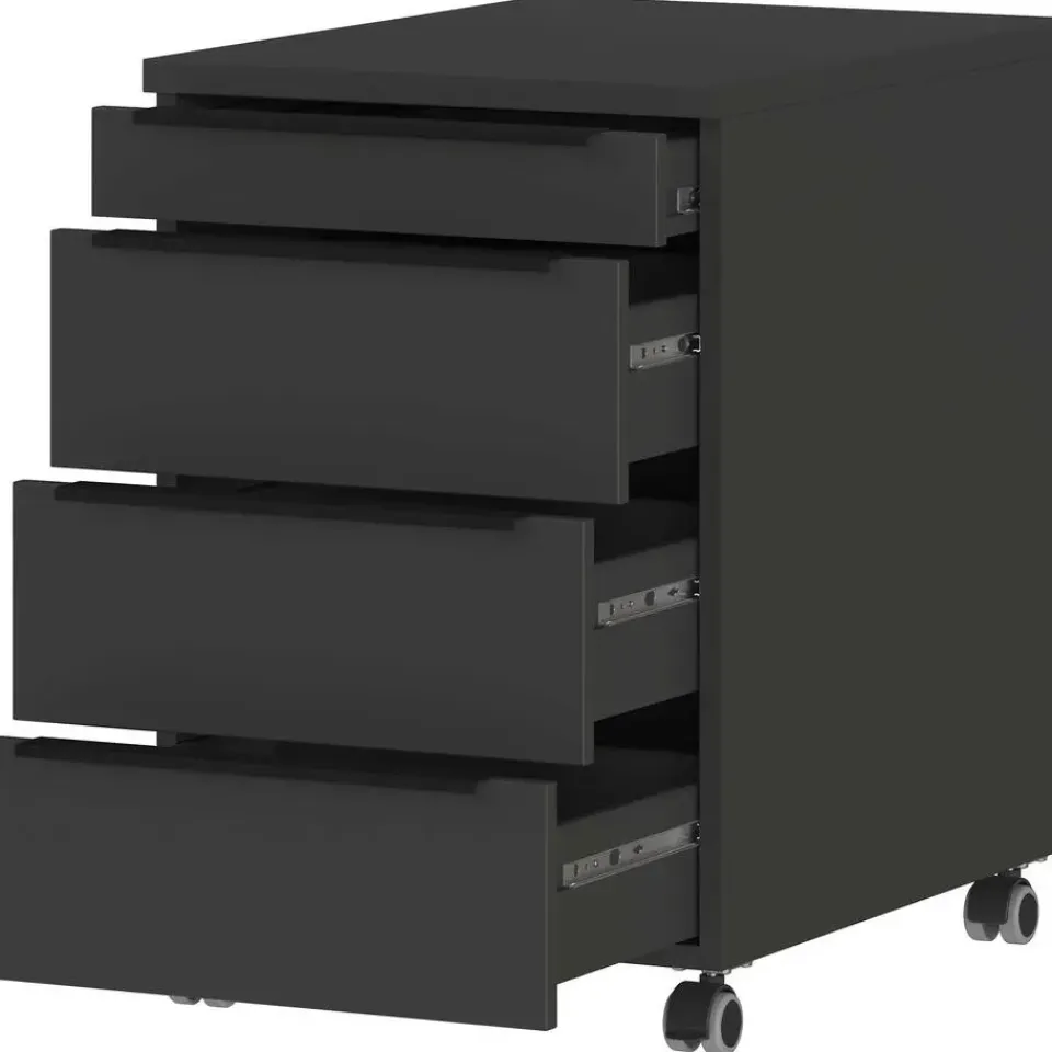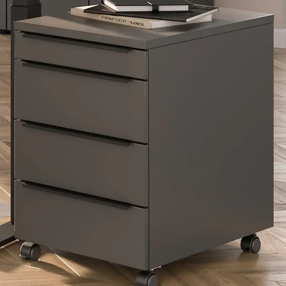 De ladekast met wielen uit de Hermoso-reeks combineert functionaliteit met een eigentijds ontwerp. Het antracietkleurige design voegt een moderne uitstraling toe aan elke ruimte. Met afmetingen van 42 cm lengte, 60 cm breedte en 63 cm hoogte biedt deze kast voldoende opbergruimte zonder te veel ruimte in beslag te nemen. De aanwezigheid van wielen maakt het gemakkelijk om de kast te verplaatsen naar verschillende locaties in huis, waardoor het een veelzijdige oplossing is voor het organiseren van kleding, accessoires, documenten of andere benodigdheden. Dankzij de soepel lopende wielen kunnen de lades moeiteloos worden geopend en gesloten, waardoor het gebruiksgemak wordt gemaximaliseerd. Het stevige materiaal zorgt voor duurzaamheid en stabiliteit, terwijl het slanke ontwerp het ideaal maakt voor gebruik in diverse interieurstijlen. Of het nu in de slaapkamer, woonkamer, kantoor of zelfs in een studioappartement is, deze ladekast past zich gemakkelijk aan aan elke omgeving en biedt een praktische en esthetisch aantrekkelijke opbergoplossing.