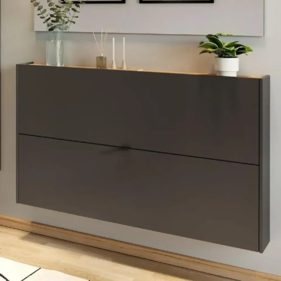 Het grafietgrijze design benadrukt de strakke lijnen en subtiele details, waardoor het dressoir een tijdloze en veelzijdige uitstraling krijgt. De ruime lades en compartimenten bieden georganiseerde opslagmogelijkheden voor diverse items, waardoor het dressoir zowel functioneel als esthetisch bevredigend is.