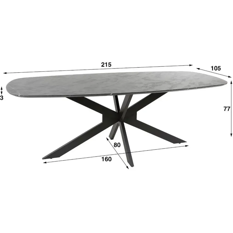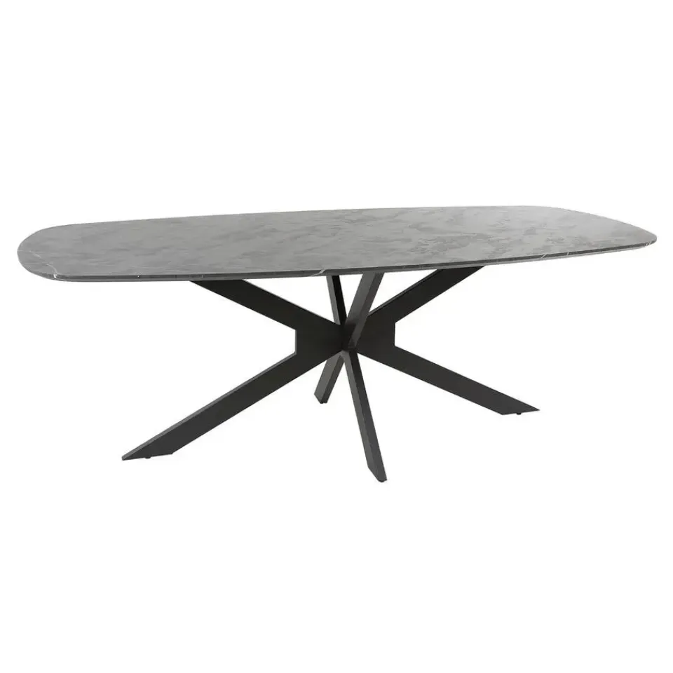 Eetkamertafel Deens Ovaal Marmerlook Zwart 215cm – Giga Meubel