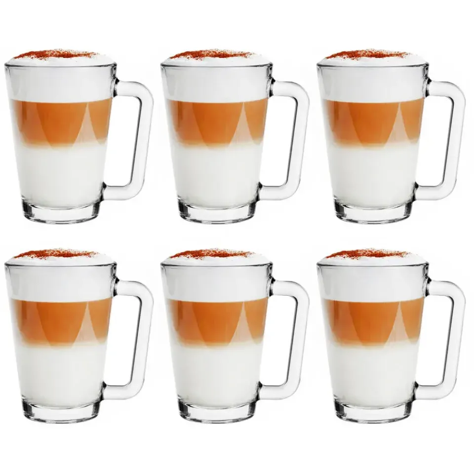 Glasmark Theeglazen/koffie glazen set model Toscane, gemaakt van sierlijk helder transparant glas. In deze verpakking 6x stuks van 250 ml. Mooi gevormde glazen voor in elke huishouden. De glazen zijn vaatwasser en magnetron bestendig.