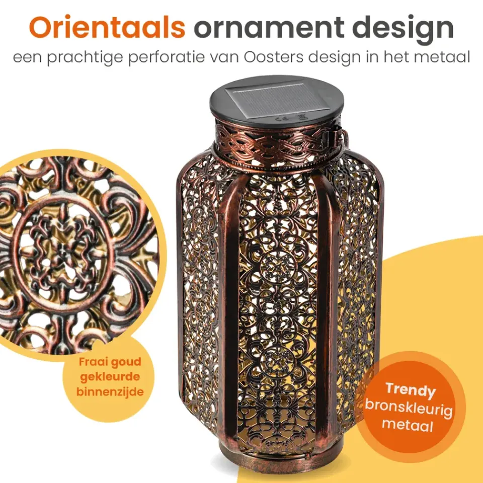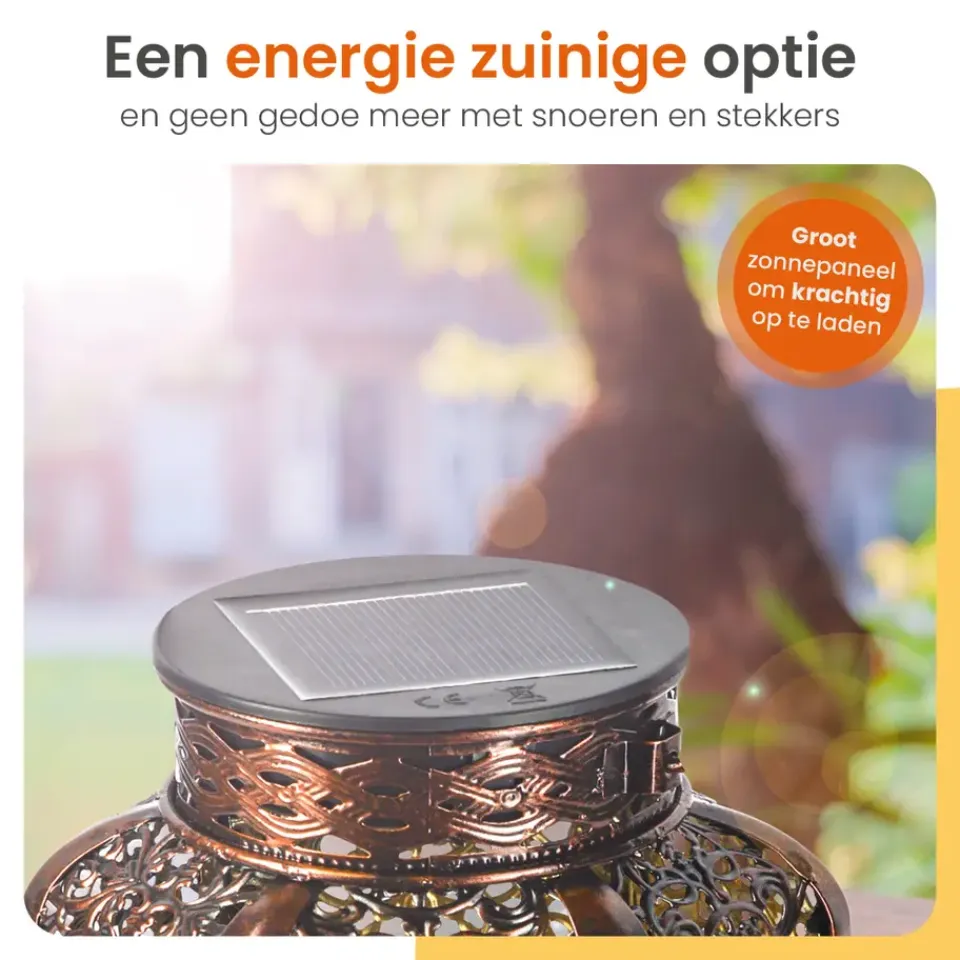 De unieke schaduweffecten die door het metalen ontwerp worden gecreëerd, zorgen voor een prachtig lichtspel op je terras of in de tuin. Dit voegt een artistiek element toe aan je buitenverlichting en maakt elke avond speciaal.