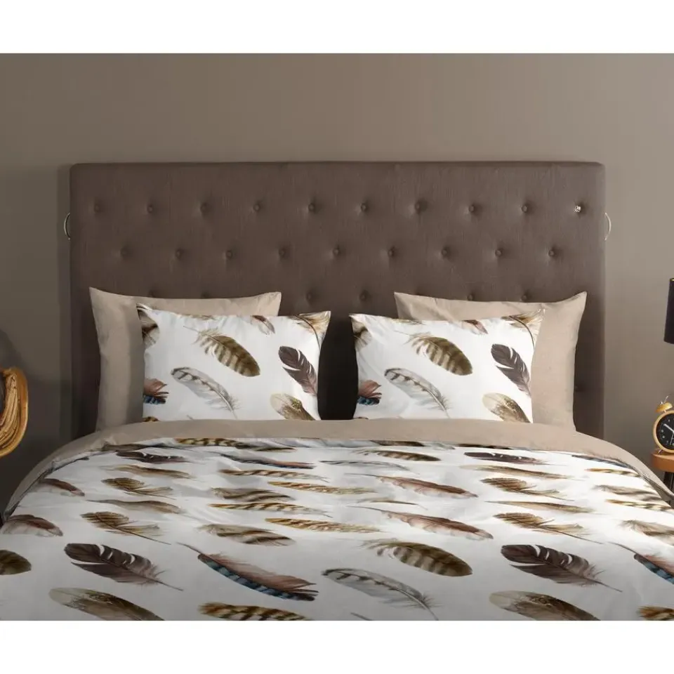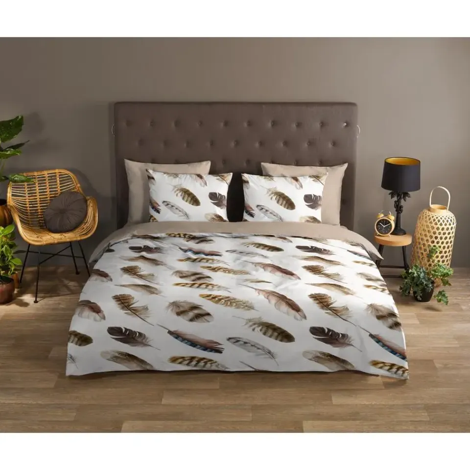 Dekbedovertrek Fedra van Good Morning met veren, in de kleur zand. Dit is gemaakt van 100% katoen. De kwaliteit is ademend, vochtabsorberend en voelt zacht en soepel aan. Dit mooie dekbedovertrek fleurt iedere slaapkamer op en is geschikt voor elk jaargetijde. Het katoenen dekbedovertrek is heerlijk koel in de zomer en geeft warmte in de winter.