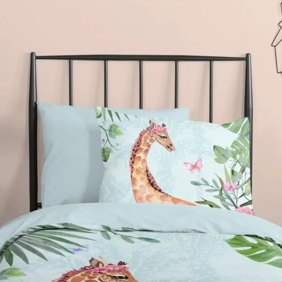 Kinderdekbedovertrek Desiree van Good Morning in de kleur aqua, met een print van giraf. Het dekbedovertrek is gemaakt van 100% katoen. Deze kwaliteit is ademend, vochtabsorberend en voelt zacht en soepel aan. Dit leuke kinderdekbedovertrek is een leuke toevoeging aan iedere kinderkamer. Het kinderdekbedovertrek is geschikt voor ieder jaargetijde. Het katoenen 100% katoen is heerlijk koel in de zomer en geeft warmte in de winter.