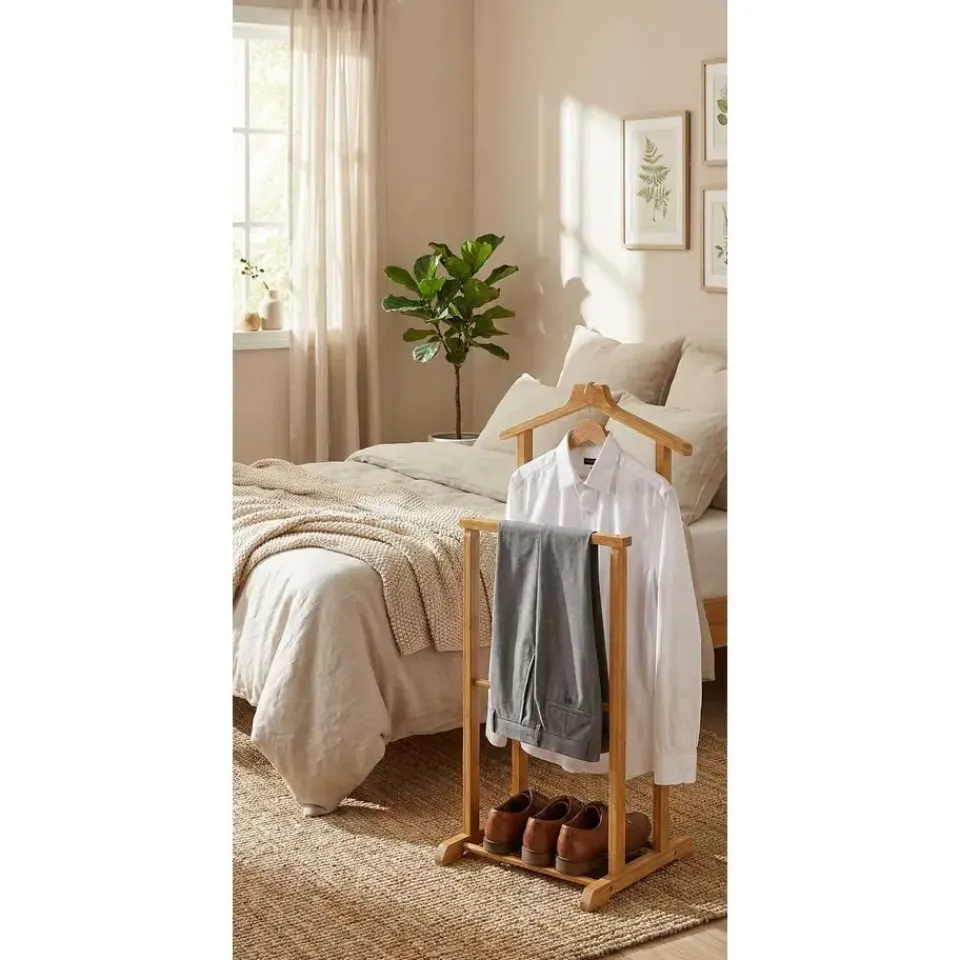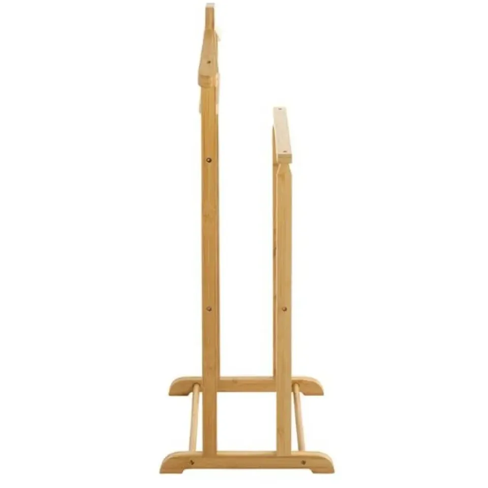 Onze kleerhanger voor heren is vakkundig gemaakt van een natuurlijk bamboedesign met een afwerking van blanke lak en brengt een vleugje elegantie in elke slaapkamer of kleedkamer. De broekenhanger is 68 cm hoog en heeft een draagvermogen van 10 kg, waardoor er voldoende ruimte is om broeken op te hangen en kreukvrij te houden. Deze kleerhanger is niet alleen stijlvol, maar ook duurzaam en stevig, zodat hij jarenlang meegaat. Zeg maar dag tegen rommelige kasten en ongeorganiseerde kleding – blijf georganiseerd en stijlvol met ons slanke kledingrek.