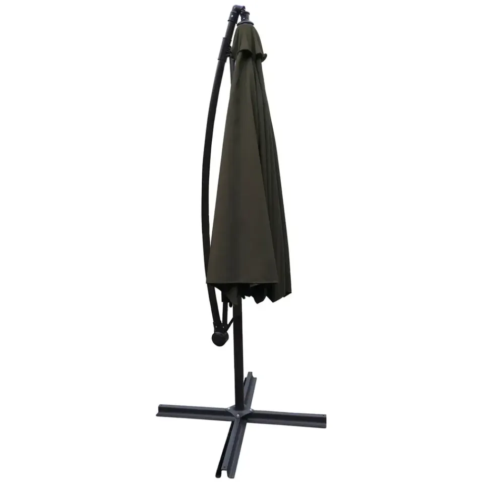 Wat de accessoires betreft, is het noodzakelijk ballast of opvulbare platen toe te voegen om ervoor te zorgen dat het op zijn plaats blijft. Happy Garden adviseert u ook om uw excentrieke parasol te beschermen met een hoes wanneer u hem niet gebruikt, zodat hij beschermd is tegen slecht weer.