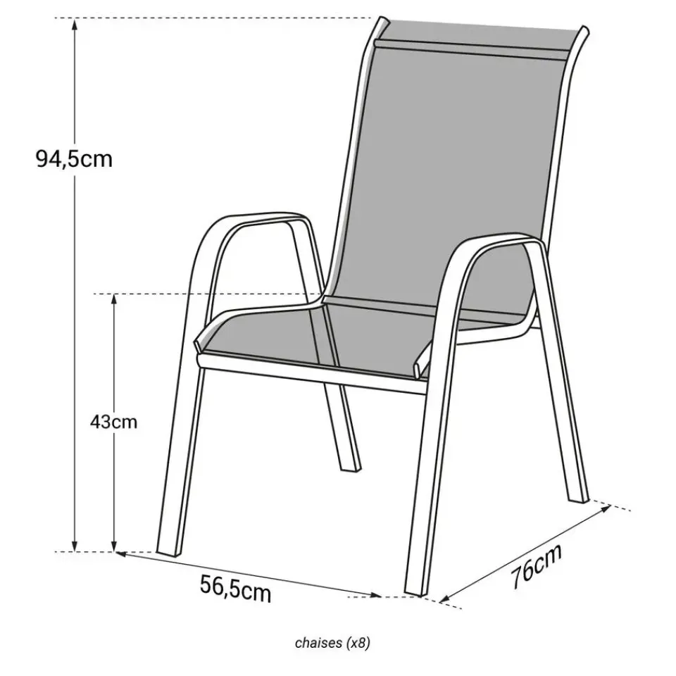 – Stoelen: D 76 × B 56.5 × H 94.5cm