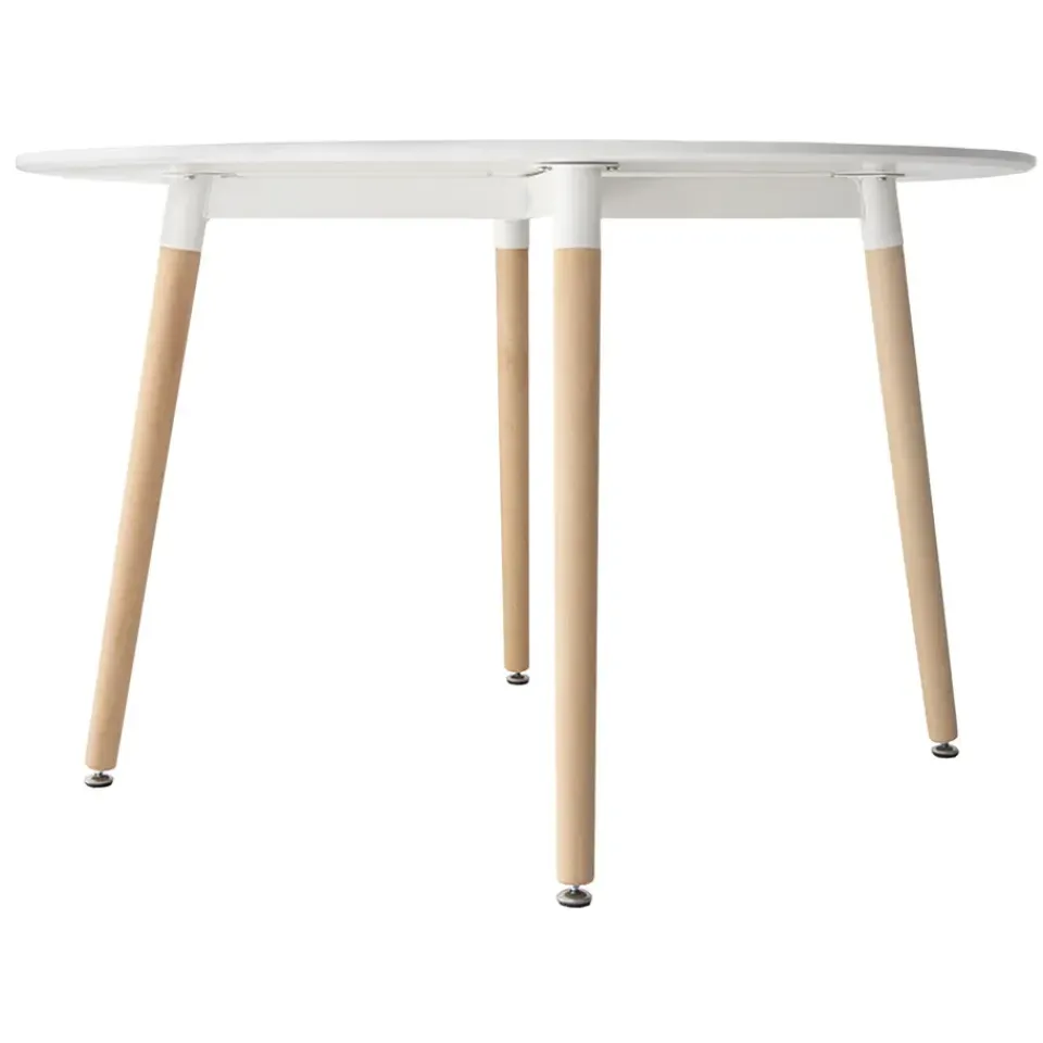 Creëer een warme en vriendelijke ruimte met deze Scandinavische ronde tafel MARTHA. Het tafelblad met een diameter van 120 cm is ideaal voor kleine ruimtes en biedt plaats aan maximaal 4 personen. Zijn schuine poten in licht hout doen denken aan de Scandinavische stijl van de jaren 50. Het zuivere design en de sobere kleuren van deze witte tafel passen perfect bij elke inrichtingsstijl. Voor een totaal Scandinavische look kunt u deze tafel combineren met de NORA stoelen.