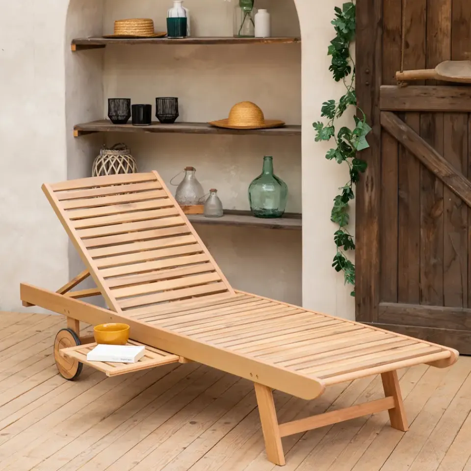 De KANAWA opvouwbare ligstoel in acacia bevat: 1 ligstoel met geïntegreerde plank