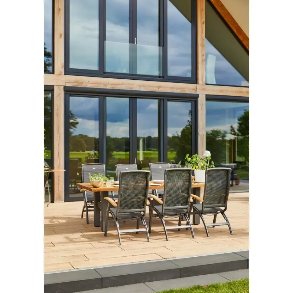 De Da Vinci standenstoel van Hartman is een exclusieve toevoeging aan ons assortiment. Het frame van deze stoel is gemaakt van aluminium. Dat gaat lang mee en heeft weinig tot geen onderhoud nodig. Wel zo fijn als je onbezorgd wilt genieten van je nieuwe stoel! De zit- en rugleuning zijn gemaakt van textileen. Een kunststof doek dat comfortabel zit. De stoel is in verschillende standen te plaatsen, zodat je altijd de juiste houding kunt vinden. Ook is deze tuinstoel opvouwbaar, wat meenemen en opbergen erg gemakkelijk maakt! De afwerking maakt deze stoel zo uniek, met gebogen randen aan de bovenkant en aan de zitting.