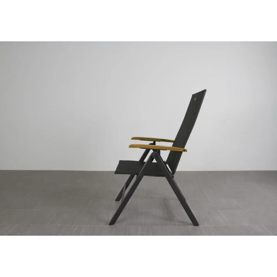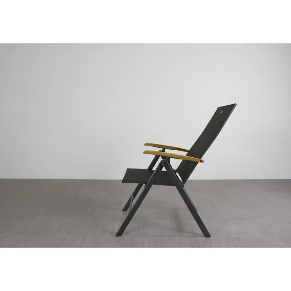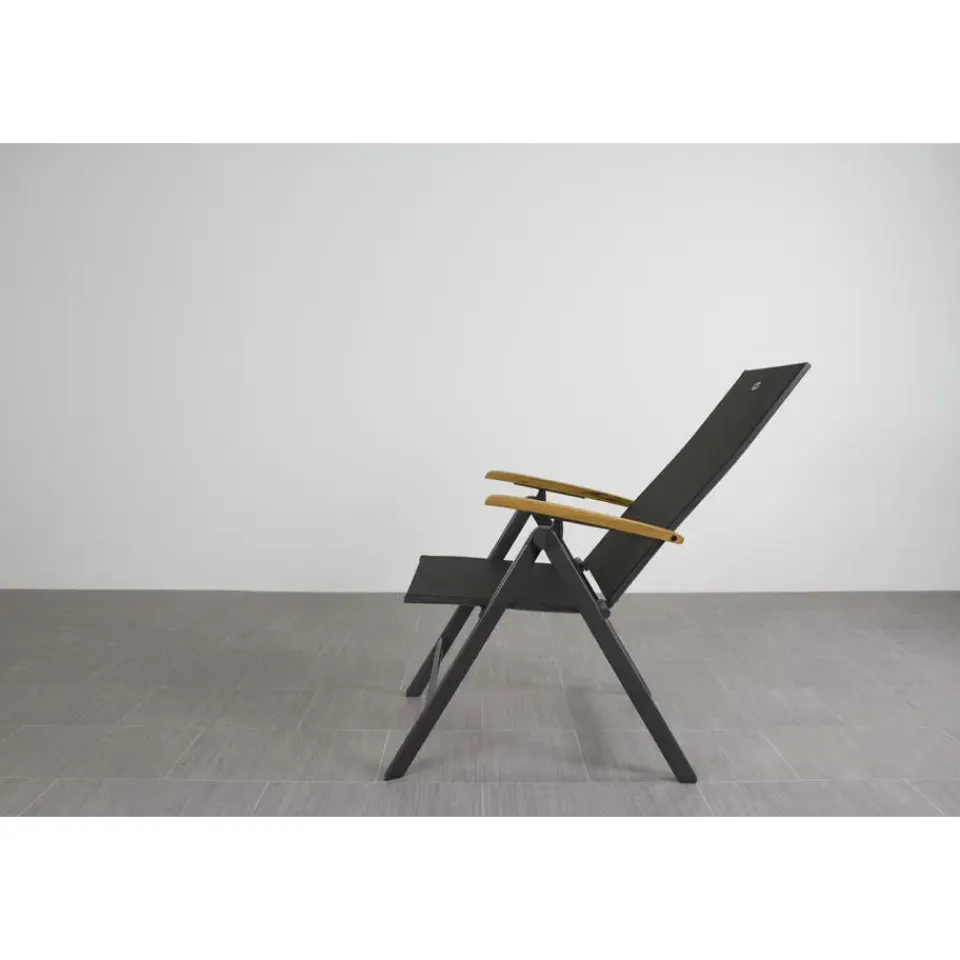 Zoek jij een relaxte tuinstoel met nét wat extra’s? De Hartman Napoli is zo’n stoel waar je meteen goed in zit. Door het strakke aluminium frame en de comfortabele zitting van textileen vormt de stoel zich lekker naar je lichaam. En nog fijner: hij is in meerdere standen verstelbaar. Ideaal om rechtop te eten of juist om achterover te leunen met een drankje erbij. De warme teak houten armleuningen maken ‘m helemaal af en voelen prettig aan je armen, zelfs in de zon. Shop eenvoudig online .