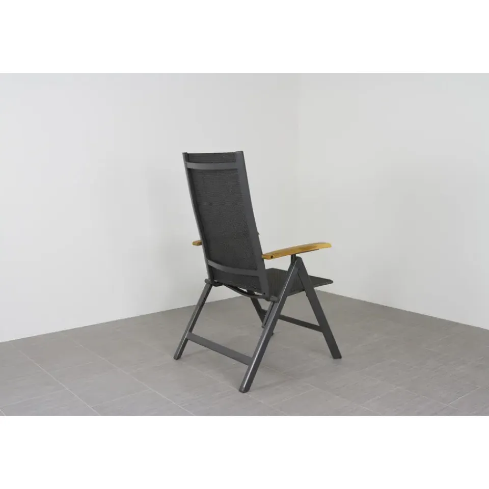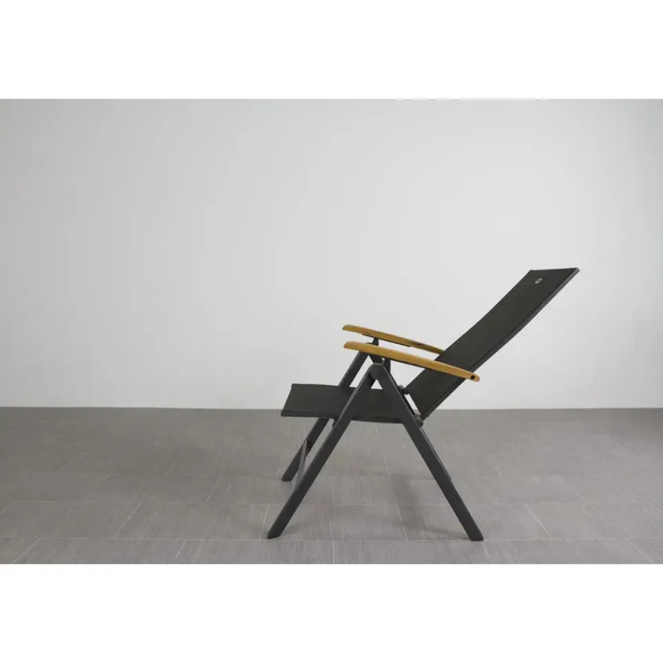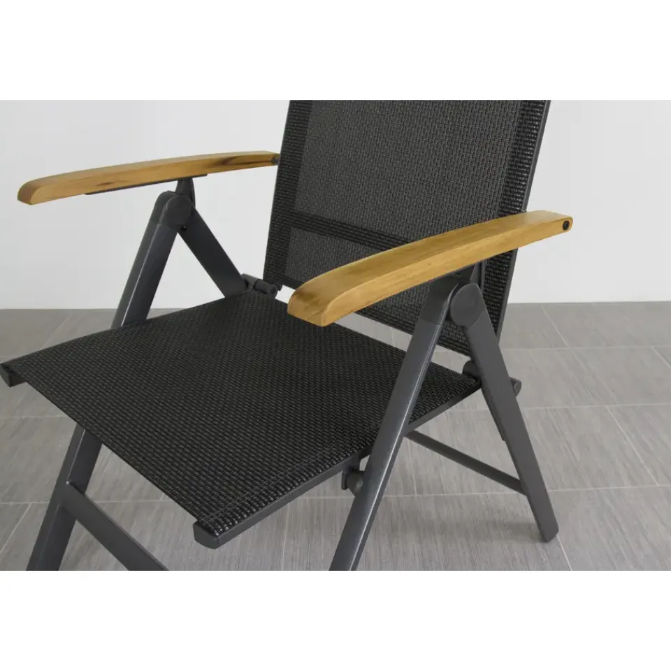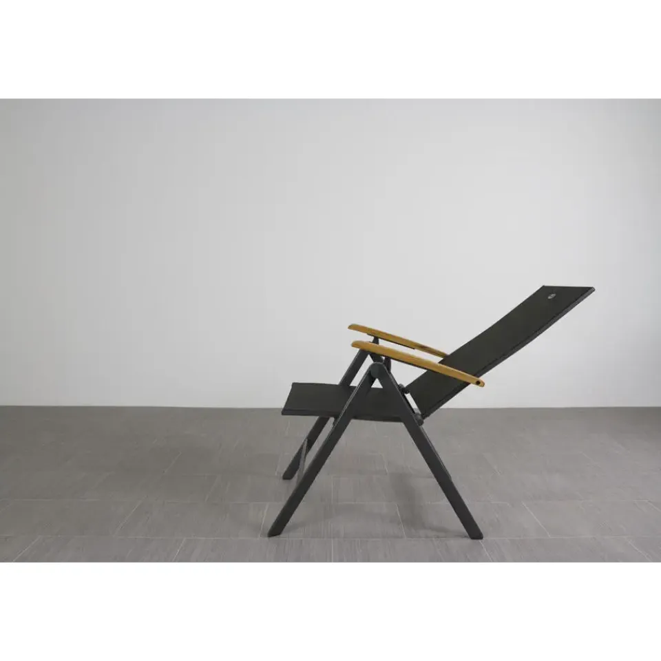 Zoek jij een relaxte tuinstoel met nét wat extra’s? De Hartman Napoli is zo’n stoel waar je meteen goed in zit. Door het strakke aluminium frame en de comfortabele zitting van textileen vormt de stoel zich lekker naar je lichaam. En nog fijner: hij is in meerdere standen verstelbaar. Ideaal om rechtop te eten of juist om achterover te leunen met een drankje erbij. De warme teak houten armleuningen maken ‘m helemaal af en voelen prettig aan je armen, zelfs in de zon. Shop eenvoudig online .