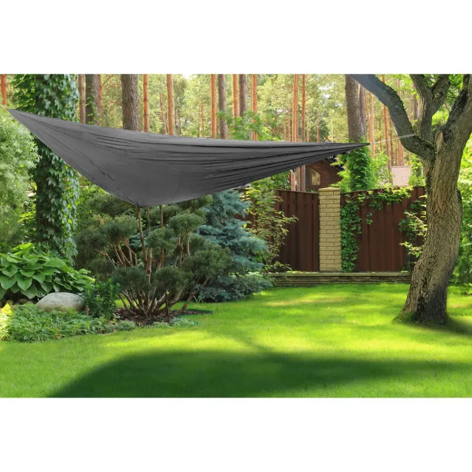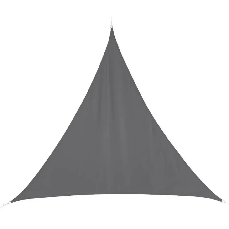 Schaduwdoek/zonnescherm/zonwering driehoek model in het grijs, met afmetingen 4 x 4 x 4 meter. Stevig schaduwdoek van waterafstotend gecoat polyester om een fijne schaduwplek te realiseren in uw tuin. Inclusief 3 meter touw voor de bevestiging. Biedt UV UPF50 bescherming tegen de zon. Serie: Curacao. Schaduwdoeken/zonnezeil/zonnedoek/zonwering voor in de tuin of terras.
