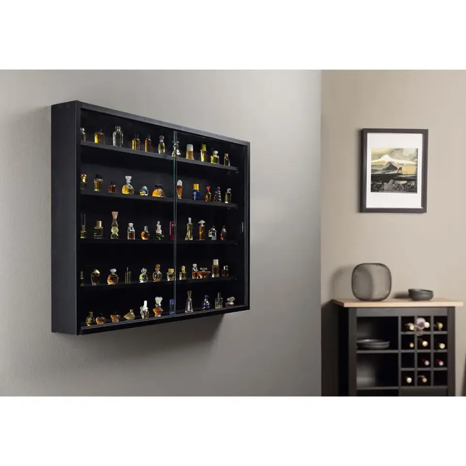 Blacklava vitrinekast, 2 schuifdeuren zwart. De Blacklava vitrinekast is een elegante en moderne opbergoplossing die functionaliteit en stijl combineert. De kast is voorzien van twee glazen schuifdeuren die een exclusieve indruk geven en het gemakkelijk maken om je favoriete spullen, zoals boeken, serviesgoed of decoraties, tentoon te stellen. Het zwarte frame voegt een minimalistische en verfijnde look toe die perfect past in moderne interieurs. De vitrinekast is ideaal voor zowel de woonkamer, eetkamer of kantoor en zorgt ervoor dat je spullen veilig opgeborgen staan en ze op een stijlvolle manier presenteren.