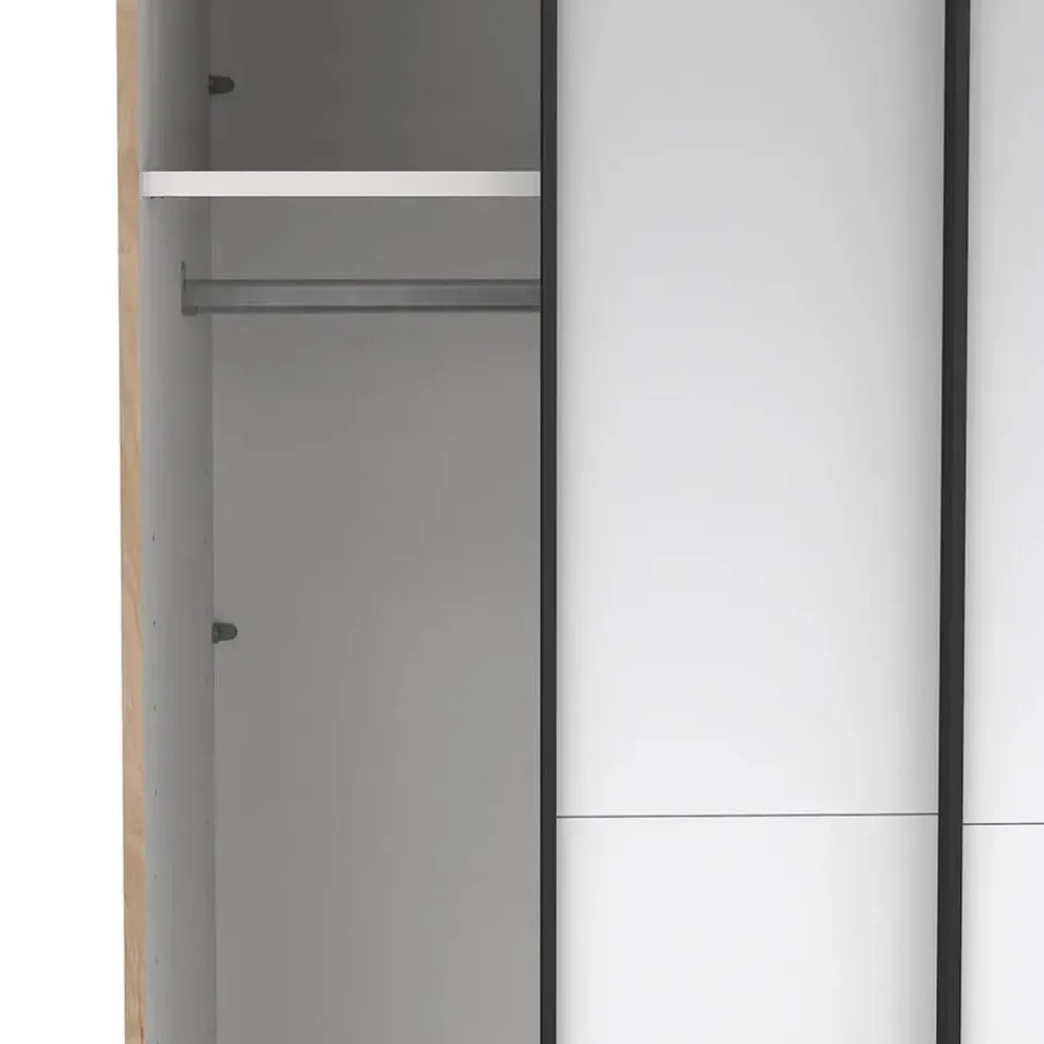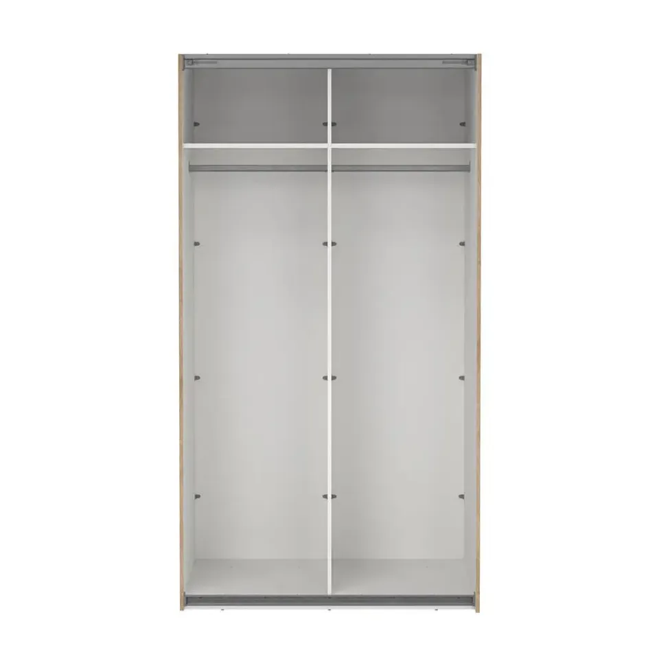 De Como schuifdeurkast met spiegeldeuren en eikenhouten decor combineert warme houttinten met praktisch design in een elegant meubelstuk dat de inrichting van de slaapkamer of hal naar een hoger niveau tilt. Met een hoogte van 220 cm biedt de kast veel verticale opbergruimte zonder onnodig vloeroppervlak in beslag te nemen. De twee schuifdeuren zijn voorzien van grote spiegelfronten, die het licht reflecteren en de kamer groter en opener laten lijken. De lichte houtstructuur zorgt voor een natuurlijke en gezellige sfeer die perfect past in zowel moderne als klassieke woningen. Een stijlvolle en functionele oplossing voor wie een lichte, ruimtelijke en harmonieuze uitstraling in huis wenst.