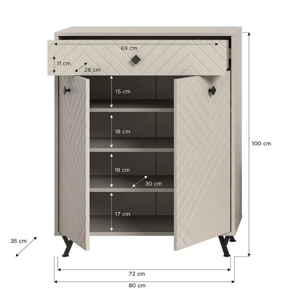 Hioshop Notes schoenenkast 2 deuren mat beige Online