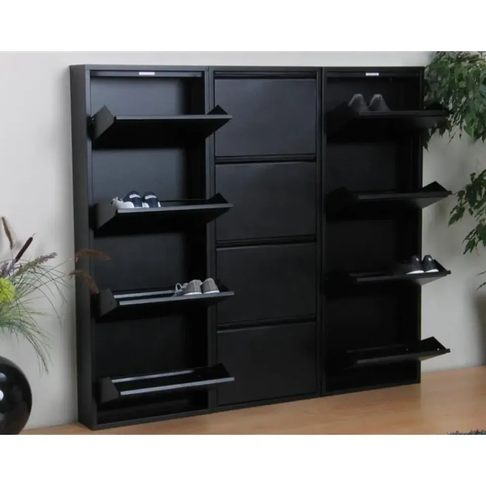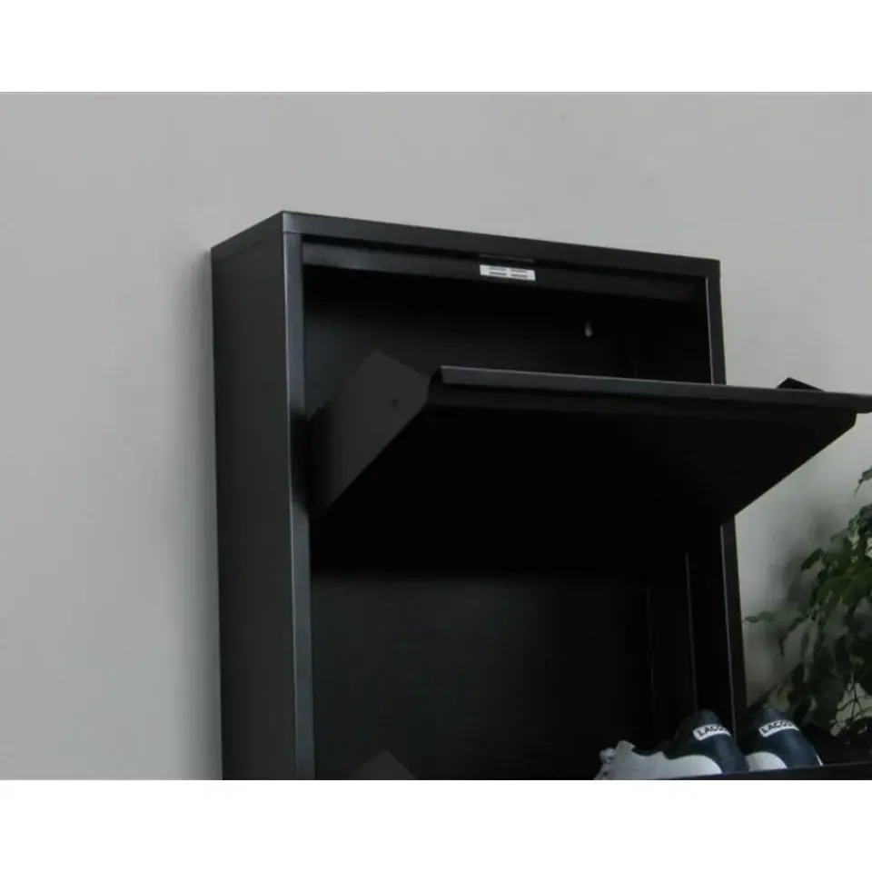 Pisa schoenenkast met 12 deuren in metaal zwart. Volledig gemonteerd geleverd is een schoenenkast in de kleur zwart, die zowel stijl als functionaliteit in uw huis brengt. Onze Pisa schoenenkast met 12 deuren in zwart metaal is gemaakt in een eenvoudig en stijlvol ontwerp. Het meubilair wordt gemonteerd geleverd, zodat u het direct kunt plaatsen wanneer u het ontvangt. De 3 schoenenkasten zijn ook afzonderlijk te gebruiken. Leuke schoenenkast van gepoedercoat metaal, waar je je schoenen ruimtebesparend in kunt opbergen. Met deze slimme schoenenkast beheer je de schoenenopbergers in de inkomhal, bijkeuken of slaapkamer. Alle deuren van elke afzonderlijke schoenenkast gaan tegelijkertijd open. Je kunt de schoenenkast op de grond plaatsen en aan de muur bevestigen, of je kunt de schoenenkast aan de muur hangen. Met onze Pisa schoenenkasten kun je eventueel je eigen persoonlijke stijl in huis creëren samen met enkele leuke woonaccessoires. Je maakt deel uit van de mode en maakt deel uit van de nieuwe woontrends, zoals je die ziet in tijdschriften en woonmagazines. Dit product is gemaakt met oog voor detail, wat zowel esthetische aantrekkingskracht als hoge duurzaamheid garandeert. Het is ontworpen met zowel functionaliteit als stijl in gedachten, waardoor het de perfecte keuze is voor elke kamer in uw huis. De gebruikte materialen zijn van hoge kwaliteit, waardoor het product een lange levensduur heeft en bestand is tegen dagelijks gebruik. Of het nu voor opslag is of als decoratieve toevoeging, dit product zal uw interieur naar een hoger niveau tillen en extra comfort en elegantie in uw huis brengen.