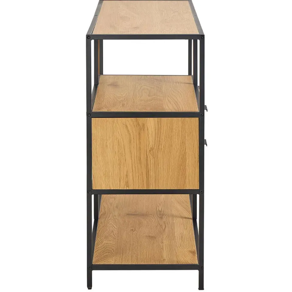 De Seaford boekenkast in natuurlijke kleur combineert stijlvol design met praktische functionaliteit. Deze boekenkast biedt twee ruime lades voor het opbergen van kleine spullen en drie open planken voor het opbergen of tentoonstellen van boeken, decoraties en persoonlijke bezittingen. De lichte houten structuur van de boekenkast in natuurlijke kleur samen met het eenvoudige metalen frame geeft een tijdloze en minimalistische uitstraling die perfect past bij zowel moderne als klassieke interieurs. De open plankenstructuur zorgt voor een luchtig gevoel in de kamer, terwijl er tegelijkertijd veel opbergruimte is.