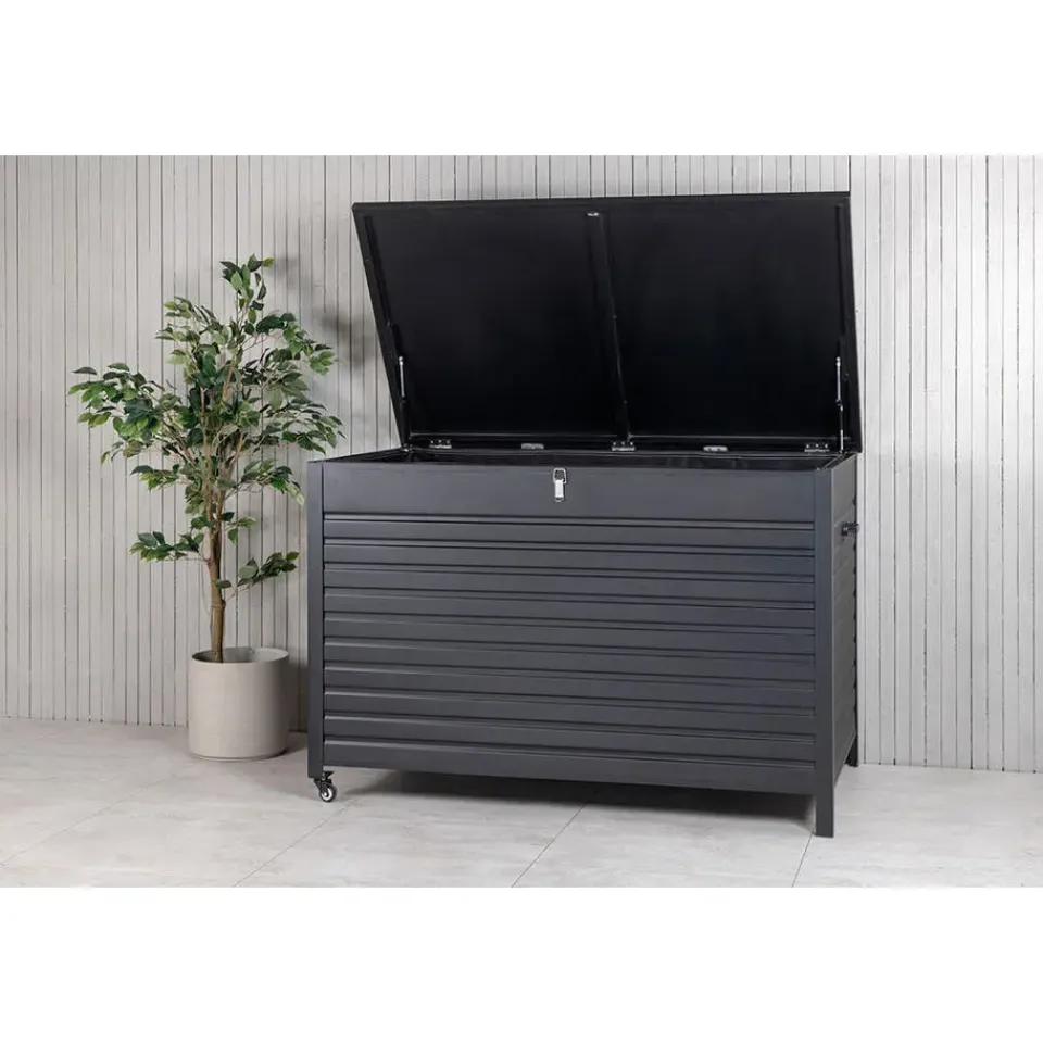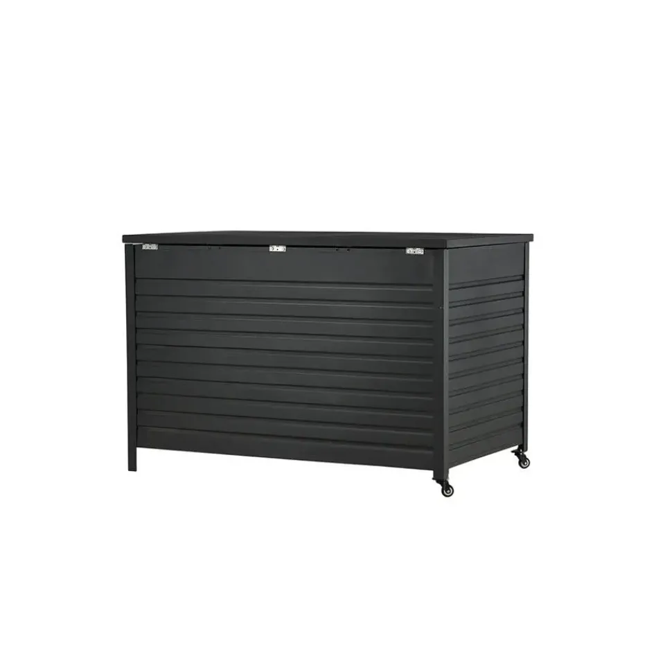 De Tiana kussenbox in het zwart is een praktische en stijlvolle opbergoplossing die ideaal is voor de tuin, terras of balkon. De kussenbox is ontworpen om uw buitenkussens, dekens en andere spullen te beschermen tegen weersinvloeden. Met een robuuste constructie en vergrendelingsmechanisme voor extra veiligheid, evenals wielen voor eenvoudig transport, is deze kussenbox zowel functioneel als stijlvol. De eenvoudige zwarte kleur en het moderne ontwerp maken het tot een discrete en praktische opbergoplossing voor uw buitenruimte.