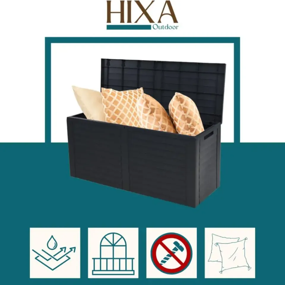 De HIXA Opbergbox Tuinkussenbox is een praktische en ruime opbergoplossing voor je tuinaccessoires, kussens, dekens en andere buitenbenodigdheden. Deze tuinbox heeft een waterdicht deksel, waardoor je spullen beschermd blijven tegen regen, stof en vuil. Het robuuste ontwerp zorgt ervoor dat de box geschikt is voor gebruik in verschillende weersomstandigheden, en de ruime afmetingen van 115x44x53 cm bieden voldoende ruimte voor al je tuinspullen.