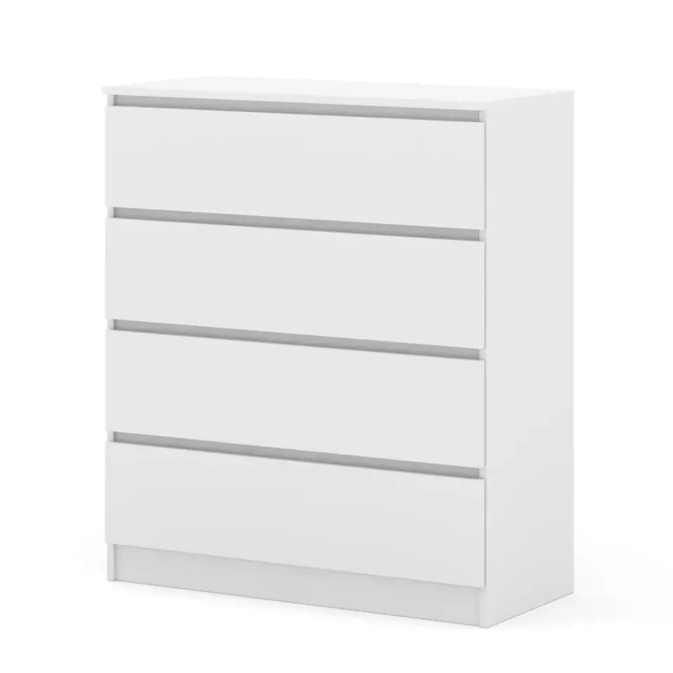 De duurzame constructie en het ruime interieur van de kommode bieden dagelijks comfort en orde. Het meubel is vervaardigd uit solide 16 mm gelamineerd plaatmateriaal, en het gladde front zonder handvatten benadrukt het moderne design en gebruiksgemak.