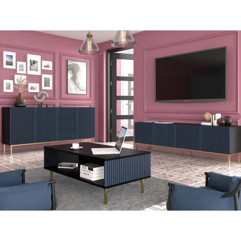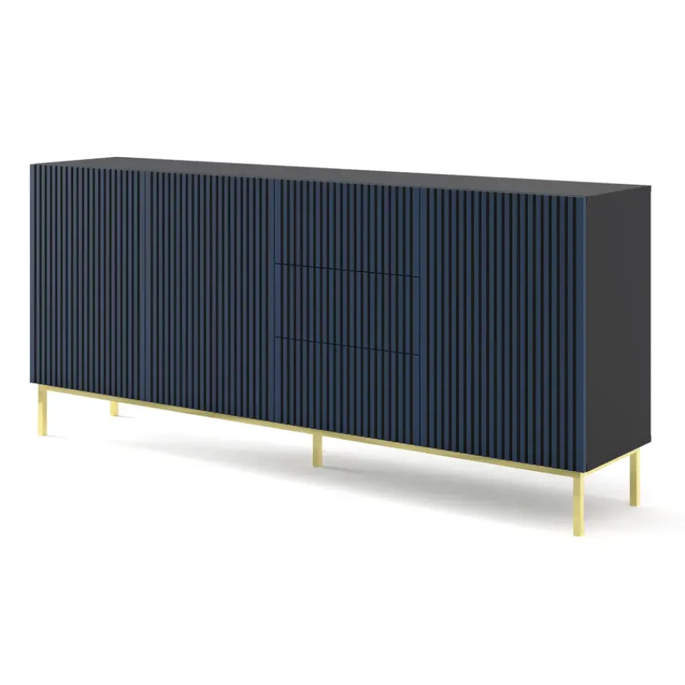 De Ravenna F-collectie biedt stijlvolle meubels die zorgen voor een unieke inrichting met een opvallend kleuraccent. De combinatie van een zwarte romp met marineblauwe fronten, versierd met uitgesproken zwarte frezen, is een keuze voor mensen die niet bang zijn voor intense kleuren in hun interieur. Het harmonieert prachtig met een metallic frame, dat stabiliteit biedt. Meubels uit deze collectie onderscheiden zich door hoogwaardige afwerking, aandacht voor details en functionele oplossingen.