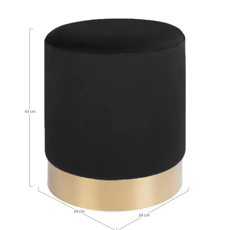 House Nordic Poef Gamby Velvet Zwart Ø34x43cm