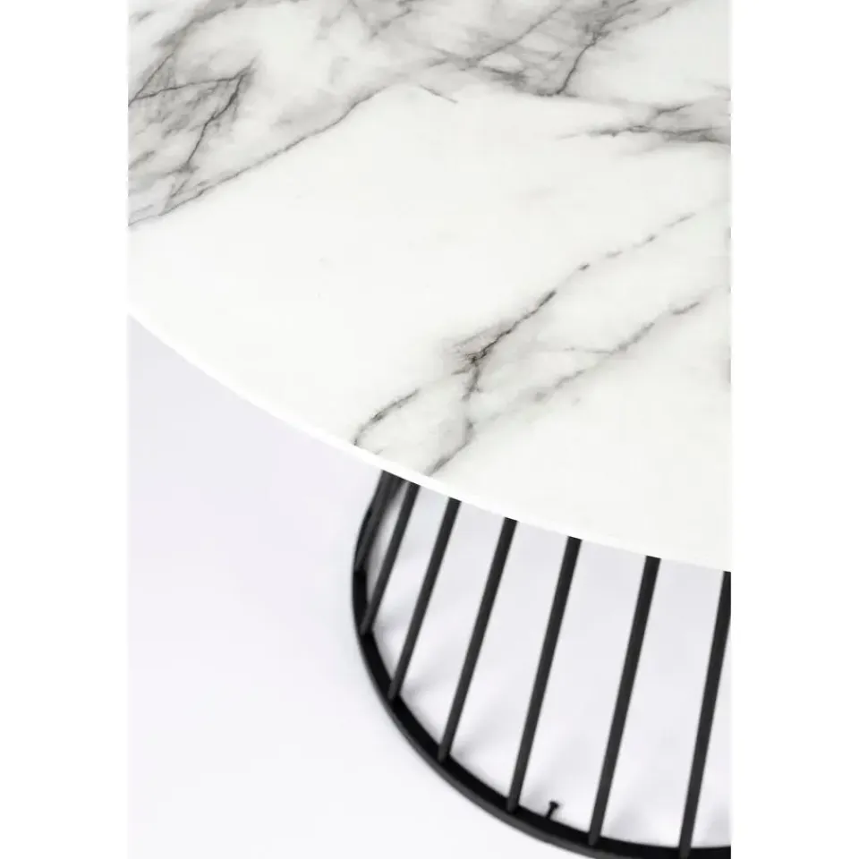 - Het tafelblad heeft een marmeren look, maar is ook verkrijgbaar met een glazen blad en gouden onderstel.