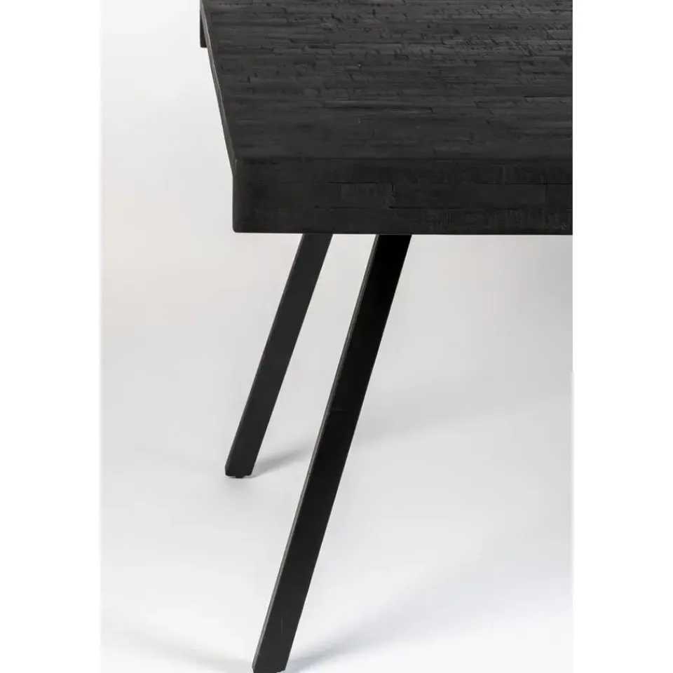 - Het tafelblad is ingelegd met stroken gerecycled teakhout, verkrijgbaar in het zwart of licht teakhout.
