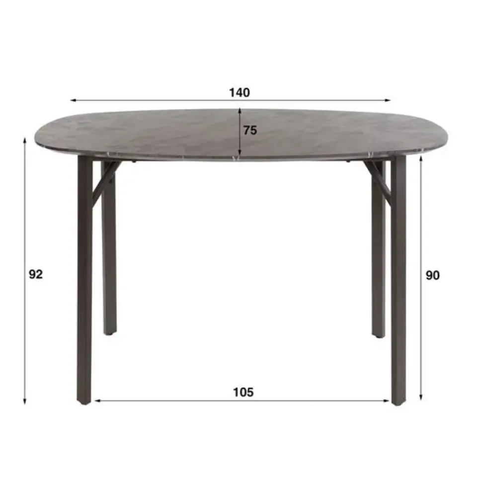 Deze bartafel is uitgevoerd in melamine met een keramiek uitstraling en een rechthoekig frame in staal. De tafel is haast niet te onderscheiden van een keramiek tafel. Het handgemaakte tafelblad is voorzien van een laagje melaminehars dat is aangebracht op hout. Het materiaal wordt door hitte en druk aangebracht. Het prachtige materiaal in combinatie met de deens ovale vorm, geeft een trendy, maar tegelijk ook tijdloze tafel.