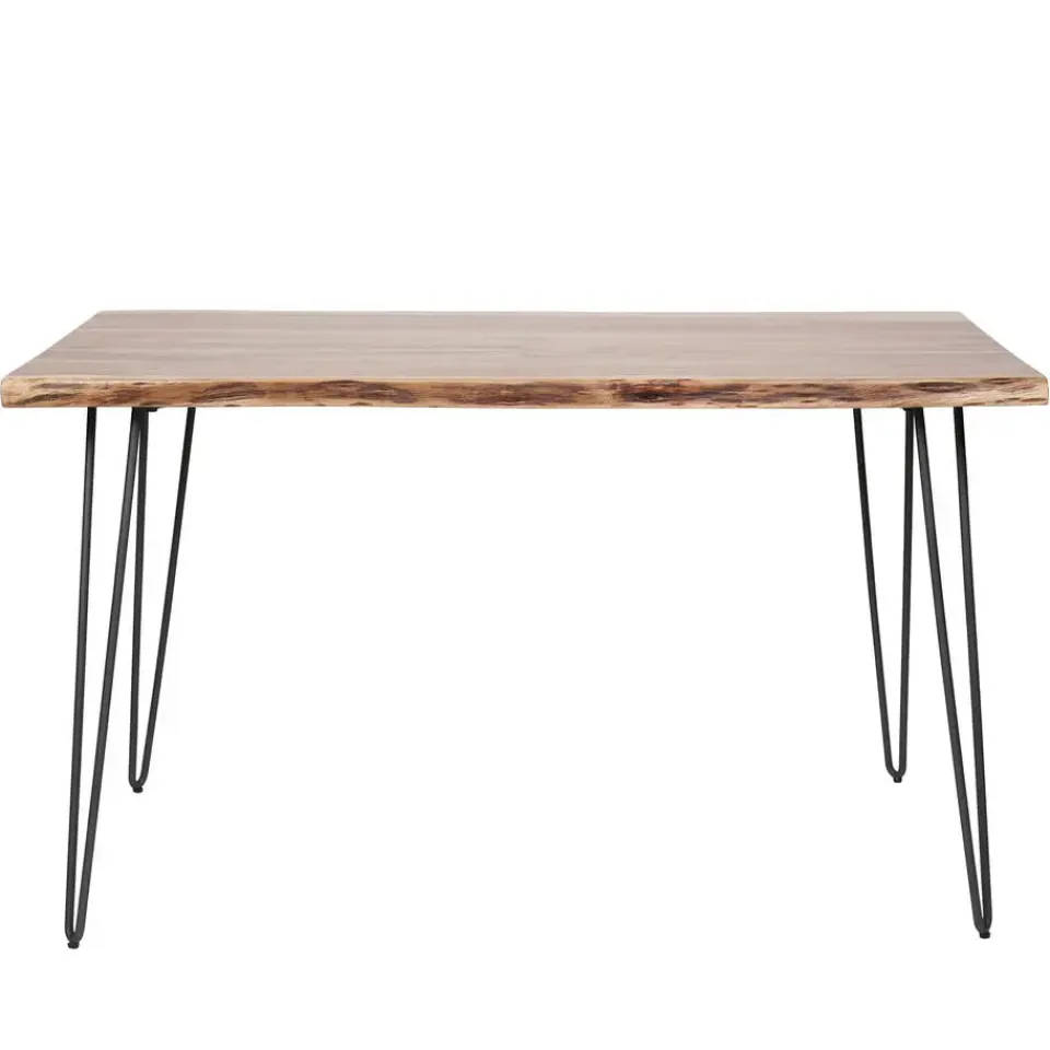 Deze eetkamertafel is uitgevoerd in acacia hout. Het blad heeft een afmeting van 130 cm, met een gepoedercoat frame. Deze tafel geeft iedere ruimte een trendy touch en is met name geschikt voor een kleine ruimte. Het blad heeft een echte boomstam uitstraling en is dan ook op ambachtelijke wijze gemaakt.