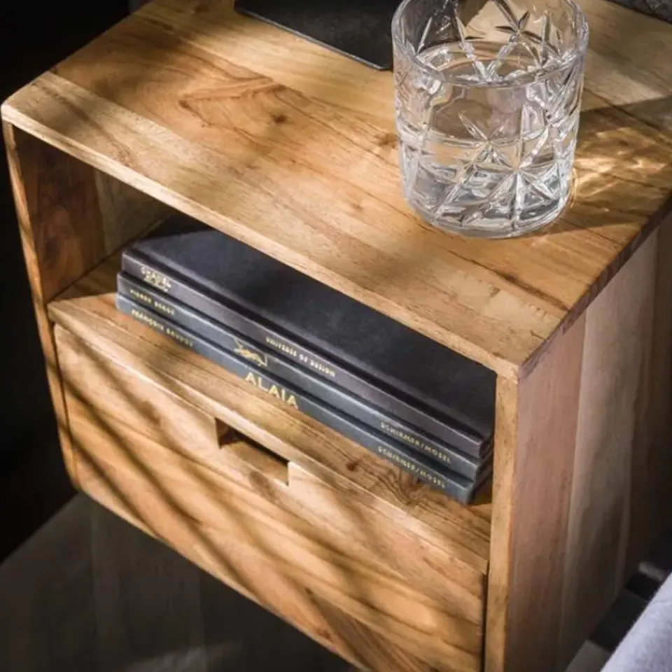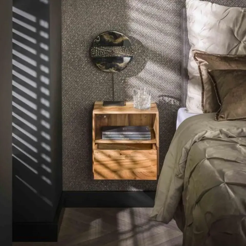 Opzoek naar een trendy nachtkastje? Dan is dit nachtkastje perfect voor jou! Dit nachtkastje ‘flat’ is uitgevoerd in acacia hout. Het nachtkastje heeft een lade en een open vak. Het nachtkastje wordt door middel van 2 schroeven aan de wand gemonteerd. Een eigentijds en minimalistisch nachtkastje, geschikt voor iedere slaapkamer! Dit nachtkastje bestaat uit een set van 2.