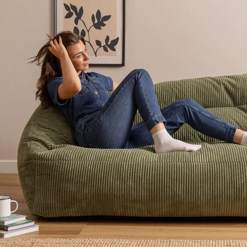 ZACHTE CORDUURSTOF: De stof van deze bank is gemaakt van zacht corduroy, is duurzaam en slijtvast, waardoor hij er met minimaal onderhoud fris en zacht blijft uitzien. Deze zitzak heeft dubbel gestikte naden en een dubbele ritssluiting voor extra duurzaamheid.