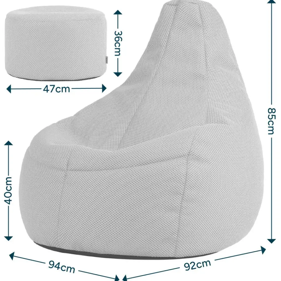 Verpakkingsinhoud: 1x Zitzak, 1x Poef
