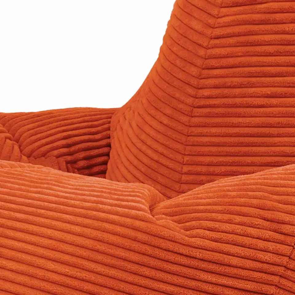 RELAX EN LEUN ACHTEROVER; Deze zitzakzetel is gemaakt om lang in te zitten, vervaardigd in super zacht corduroy en gevuld met precies de juiste hoeveelheid kralen voor een perfect ondersteunend inzakeffect.