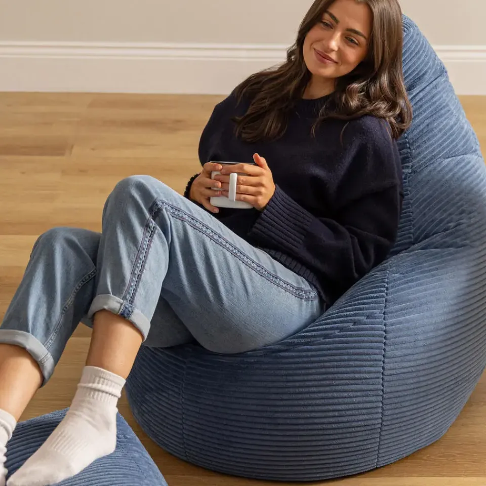 ZACHT CORDUROY: De duurzame structuur van dit zachte corduroy is bestand tegen slijtage, zodat je zitzak er altijd fris en zacht uitziet en nauwelijks onderhoud nodig heeft. Hij is ontworpen voor langdurig gebruik en heeft bovendien dubbelgestikte naden en een dubbele rits voor extra stevigheid.