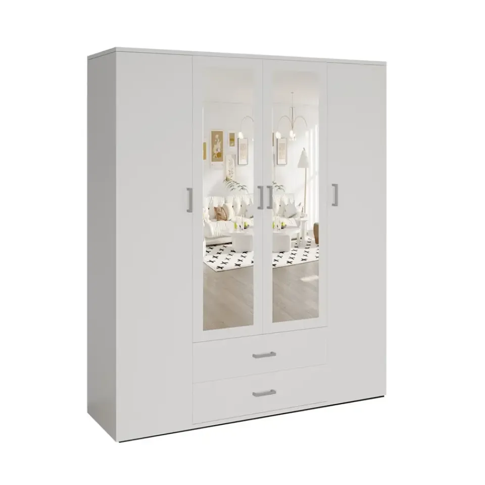 - Twee ingebouwde spiegels: De spiegels op de deuren voegen functionaliteit toe en creëren een ruimtelijk effect.