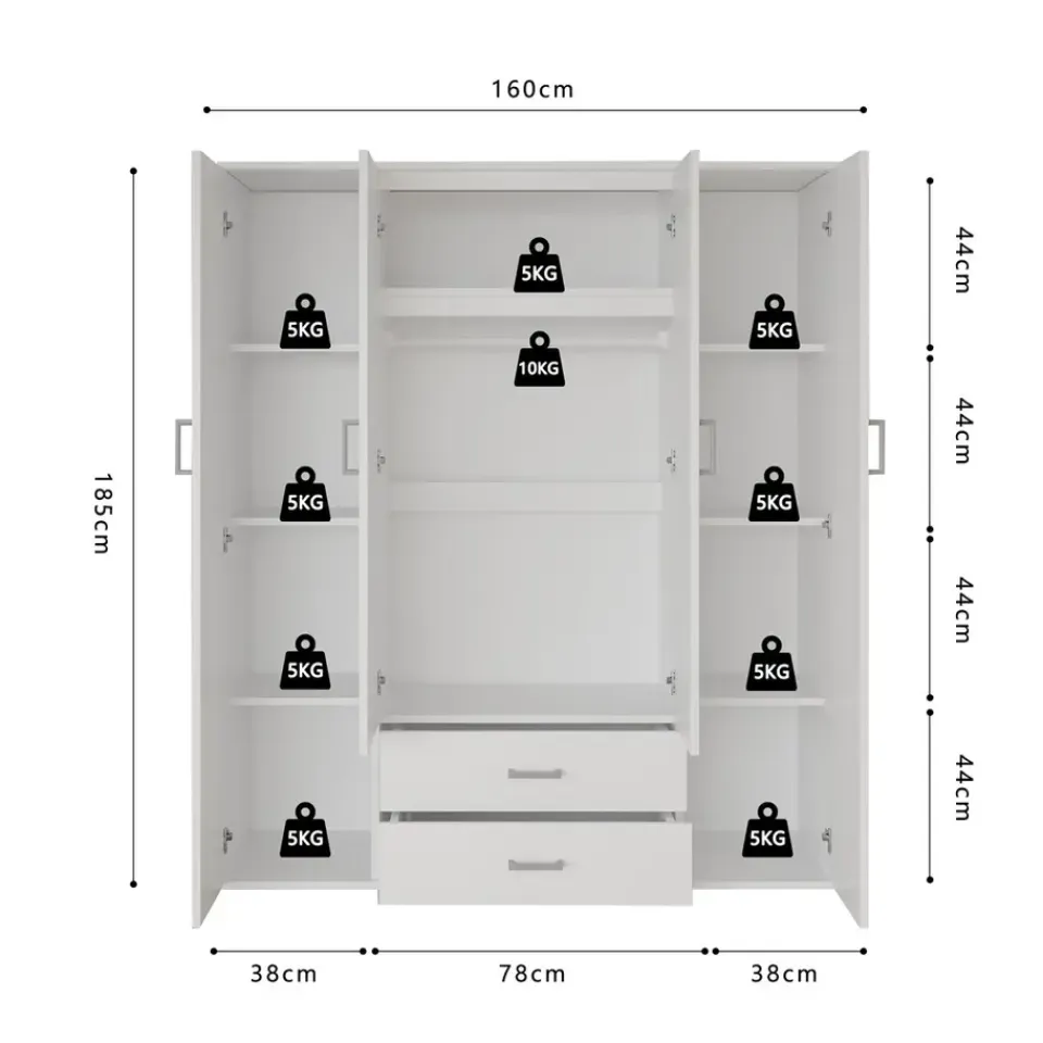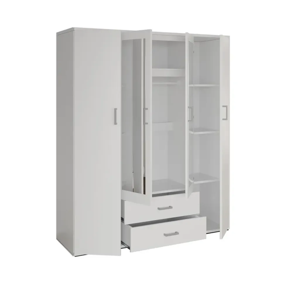 - Ruime opbergruimte: Uitgerust met 4 deuren, 2 lades, 1 hanger en 7 legplanken voor maximale opslag.