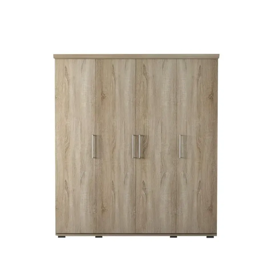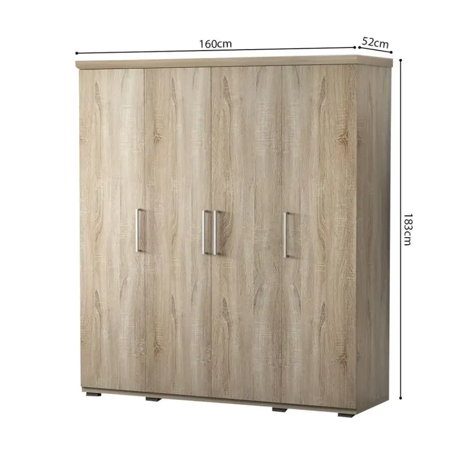 De Interiax Kledingkast ‘Mila’ in Sonoma Eik biedt een ruime en stijlvolle oplossing voor al je opbergbehoeften. Met afmetingen van 183x160x52 cm is deze kast ideaal voor het opbergen van kleding, beddengoed en accessoires, zonder aan stijl in te boeten. De kast beschikt over 4 deuren, een ruime hanger voor het ophangen van kleding, en 6 legplanken die voldoende ruimte bieden voor gevouwen kleding en andere items. Het warme Sonoma Eik design zorgt voor een natuurlijke uitstraling die naadloos in verschillende interieurstijlen past.