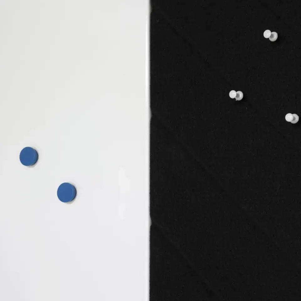 Let op: Het PET-vilt is niet zelf herstellend. Er kunnen punaises gebruikt worden om notities aan het PET-vilt te hangen, echter blijven de gaatjes van de punaises lichtjes zichtbaar.