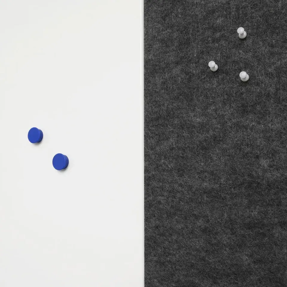 Let op: Het PET-vilt is niet zelfherstellend. Er kunnen punaises gebruikt worden om notities aan het PET-vilt te hangen, echter blijven de gaatjes van de punaises lichtjes zichtbaar.