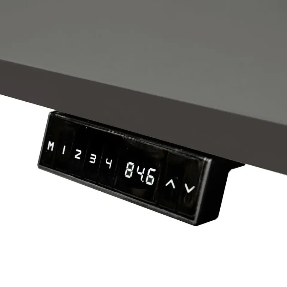 Afwisselen tussen zittend en staand werken was nog nooit zo makkelijk! Met behulp van de pijltoetsen kun je het bureau eenvoudig en snel op de gewenste hoogte instellen. Per seconde zal het bureau met 3,8 cm verlagen tot een minimale hoogte van 66 cm of verhogen tot een maximale hoogte van 131 cm. De ingestelde hoogte wordt weergegeven op het digitale display. De memory functie maakt het mogelijk om tot 4 posities te onthouden. Met één druk op de knop verstelt het bureau zich daarmee tot de opgeslagen hoogte.